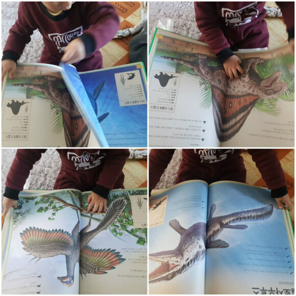 아이에게 글이 너무 많거나 그림이 너무 작으면 아이가 지루해 하기 쉬운데 아주아주큰백과그림책-공룡편은 아이가 흥미롭게 볼수 있고 아이가 원하는 내용이 쏙쏙 들어 있어서 넘 좋았던 책이였네요