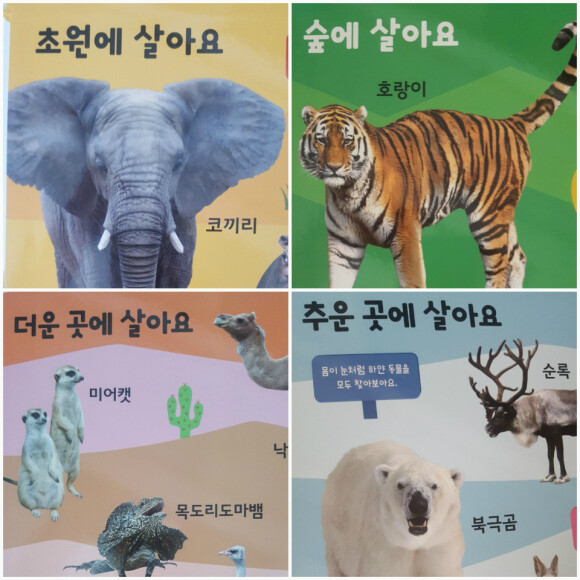 초원, 숲, 바닷속, 파충류 등등 종류별, 서식지별 한데 모아 놓아서 여러 동물의 특징도 살펴 볼 수 있답니다.