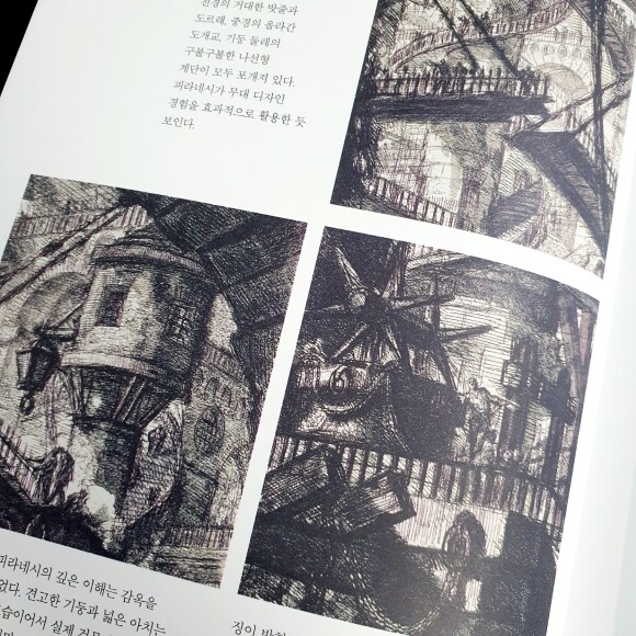 한 사람의 머릿속에서 나왔다는게 믿기지 않을 정도로 정교하고 공포스러운 섬세함으로 둘러싸인 기묘한 분위기의 감옥 내부 묘사는 죄와 벌을 감당할 징벌의 상징으로 절대적이다.