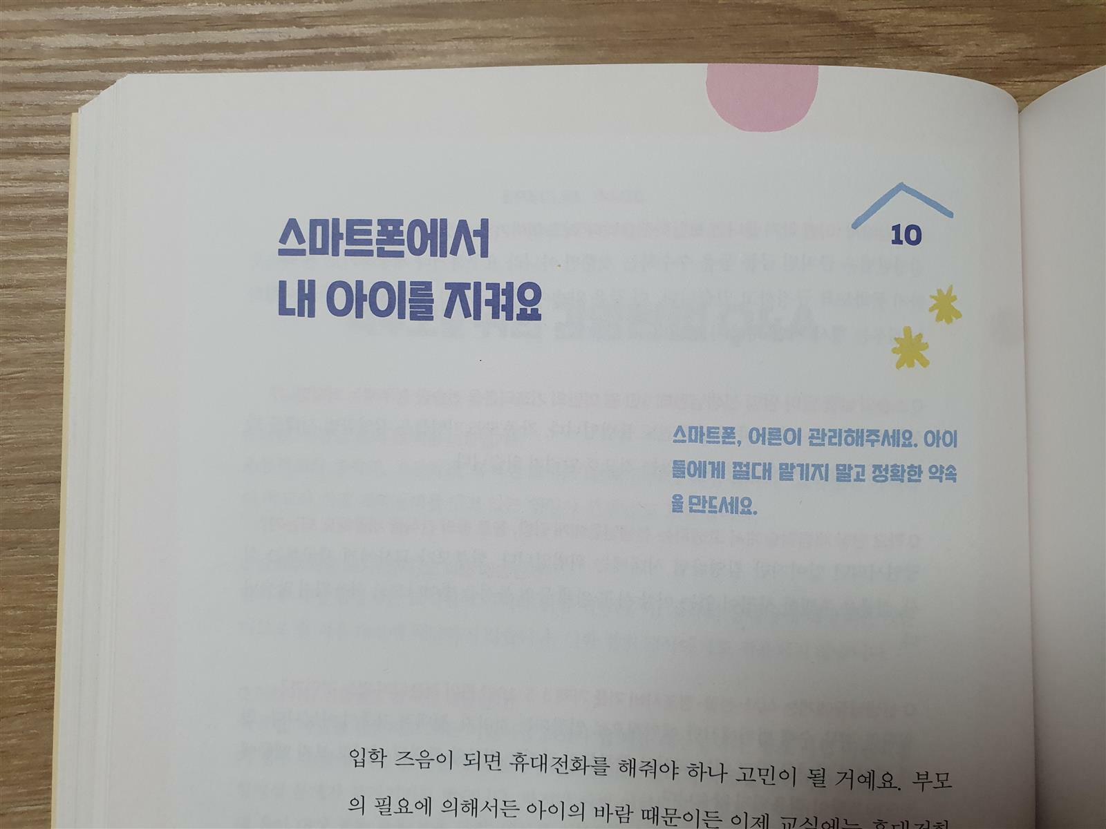 책 사이즈가 좀 큰 편에 300페이지가 넘는 꽤 두꺼운 책이지만 보기 쉽게 되어있고 한 번 더 봤으면 하는듯한 중요한 내용은 별표에 파란색 글씨로 크게 쓰여있다. 예비 학부모로서 모르는 것들을 알 수 있는 유용한 내용들이 많아 정독을 하며 읽었다.