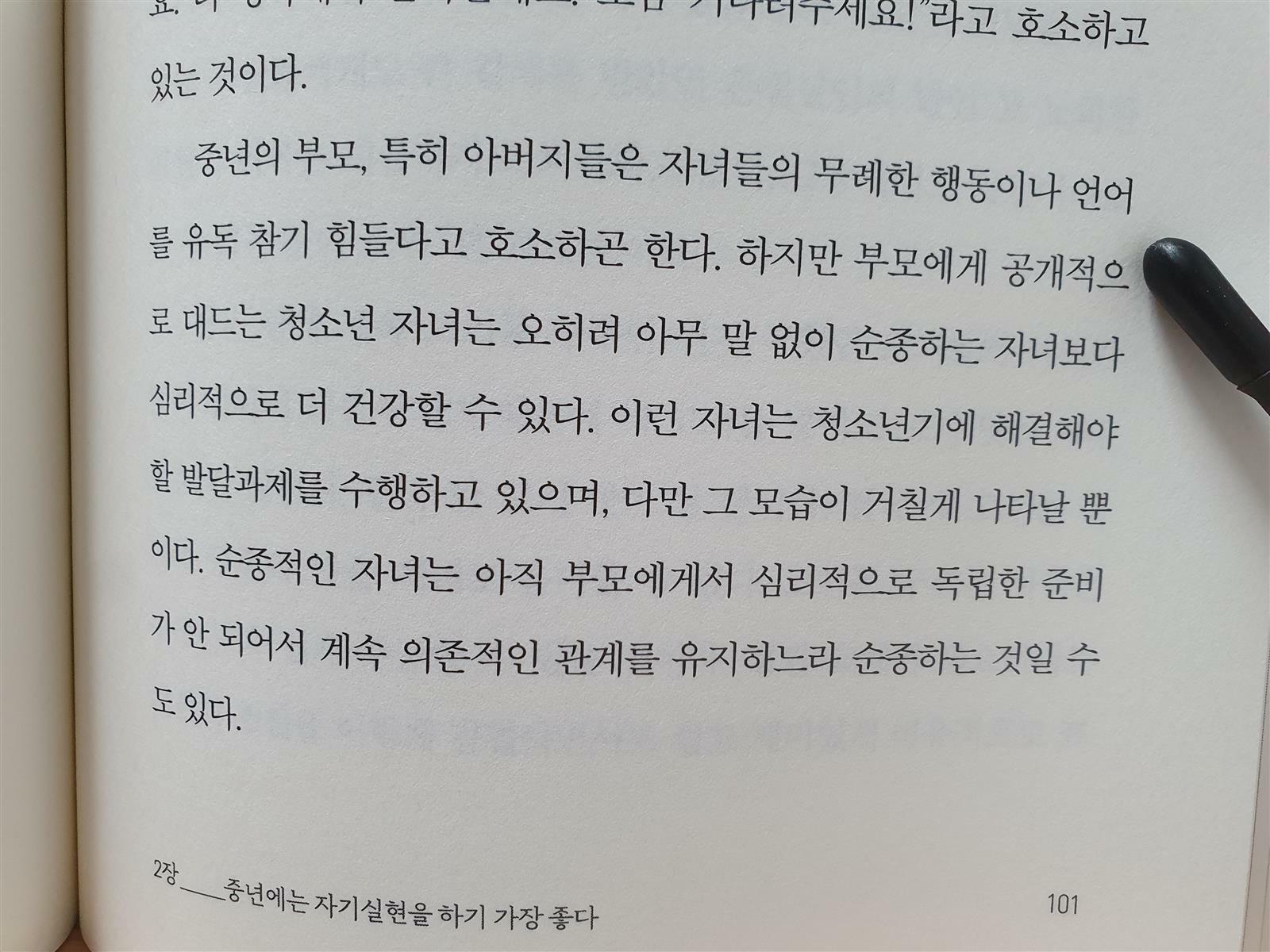 중년의 시작점에서 보게 된 이 책은 너무나도 감사한 것 같다. 인생의 중간지점에서 진정한 나의 모습에 대해 생각해 보고, 어떻게 살 것인지 고민도 해보면서 더 나은 삶을 살아갈 수 있게 심리적으로 많은 도움을 주었다.