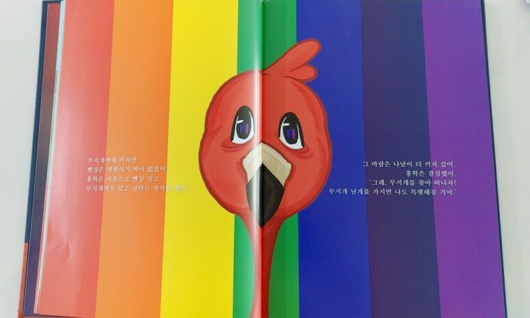 <홍학과 무지개>에 나오는 '홍학'도 처음엔 자신의 하얗기만 한 털에 대해 애착이 크게 없는 듯 하다가