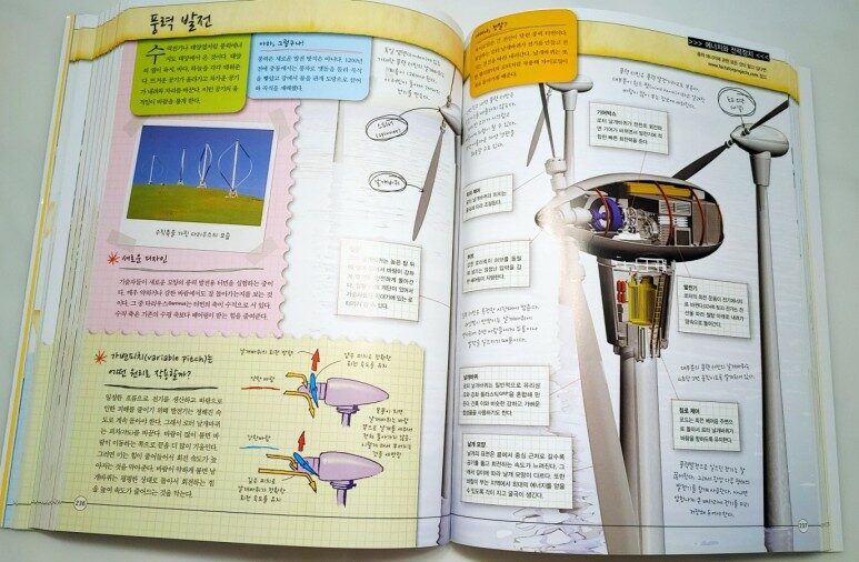 예를 들면, 프린터기가 안에 어떻게 생겼는지라던가, 풍력 발전소의 큰 날개로 어떻게 에너지를 얻고