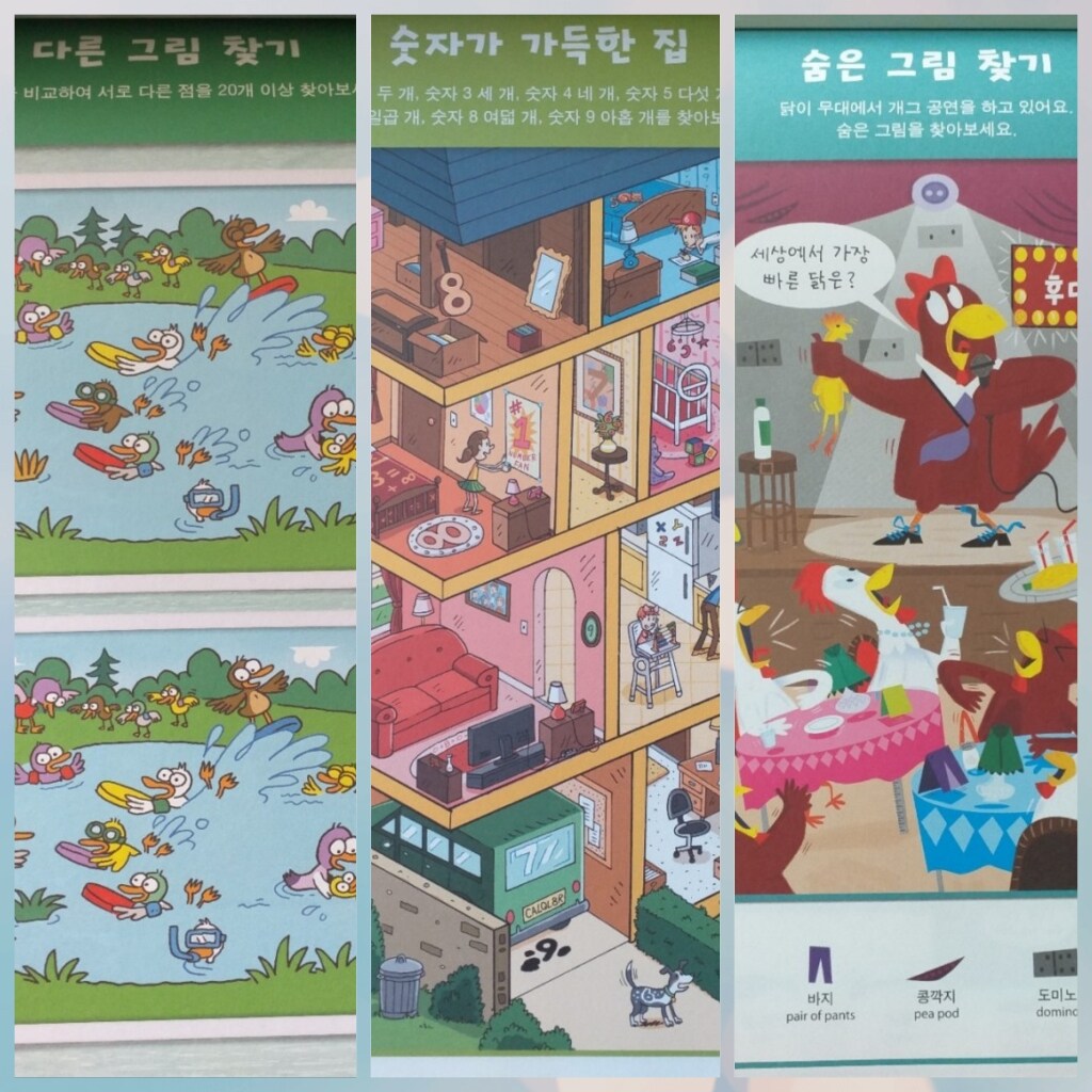 {같은 그림/다른 그림, 이상한 그림 찾기, 미로, 퍼즐 맞추기, 알파벳 퍼즐, 기억력 테스트}까지 그야말로