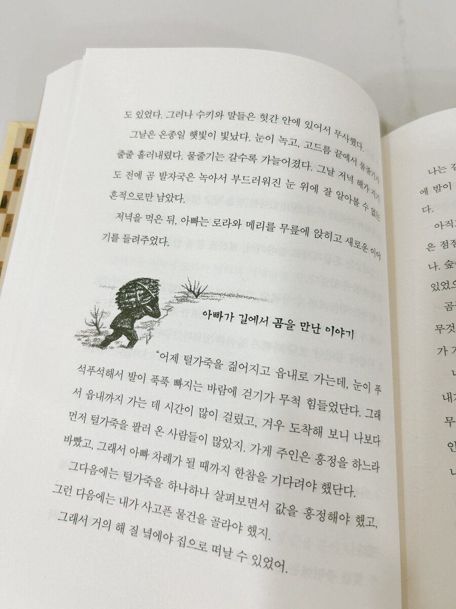 오래 간직하면서 읽기도 좋더라고요. 메리와 로라는 늘 아빠곁에서 아빠의 사냥이야기도 듣고