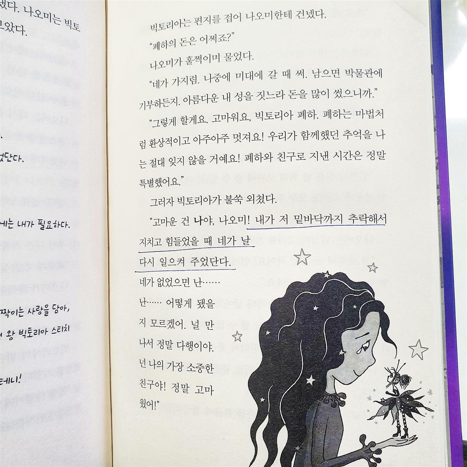얼룩진 다이아몬드💎에서 태어난 쌍둥이 요정 자매👭 빅토리아와 셀레스틴 다이아몬드 요정만이 왕이 될 수 있는 위스클링 숲에서 왕위를 원했지만 결국 왕국에서 도망쳐 나온 빅토리아✨ 진정한 자유를 찾아 인간 세상에 도착한 빅토리아에겐 어떤 놀라운 일들이 벌어질까요? 🔹️ 난 알아. 온 마음을 다해서 노력하는 일을 아무도 몰라줄 때 마음이 어떤지 너무나도 잘 안다고. 🔹️ 이게 바로 나다운 거니까! 🔹️ 그제야 빅토리아 눈빛에 죄책감이 어렸다. "인간들이 다 나쁘지는 않아." "하지만 다 좋지도 않잖아." 🔹️ 저는 이제부터 그 어떤 요정도 저를 위한다는 이유로 저 대신 결정을 내리게 두지 않을 겁니다. 🔹️ 고마운 건 나야! 내가 저 밑바닥까지 추락해서 지치고 힘들었을 때 네가 날 다시 일으켜 주었단다. 🔹️ 다시 살아가는 일은 결코 쉽지 않았다. 처음에는 환영받지 못하는 기분에 사로잡혀 있어서는 안 될 자리에 있는 있는 것같이 너무 불편했다. 하지만 빅토리아를 위해 아주 열심히 노력하는 셀레스틴 덕분에 모든게 조금씩 점점 나아졌다. 🔹️ 그래, 내가 있어야 할 곳은 바로 여기야. 우리는 서로에게서 떨어질 수 없는 사이야. 가족이니까. 전 세계 아동 베스트셀러 『이사도라 문』 작가 해리엇 먼캐스터의 차원이 다른 요정 판타지 『빅토리아 스티치』 초등 저학년👉고학년으로 성장한 독자들을 위한 📚 두께감 있는 책이었지만 흥미로운 스토리에 단숨에 읽어버렸어요. 끝까지 읽어주셔서 감사합니다. 즐거운 금요일 저녁 보내세요. *제공받은 도서를 직접 읽고 활용한 후 솔직하게 작성한 포스팅입니다.