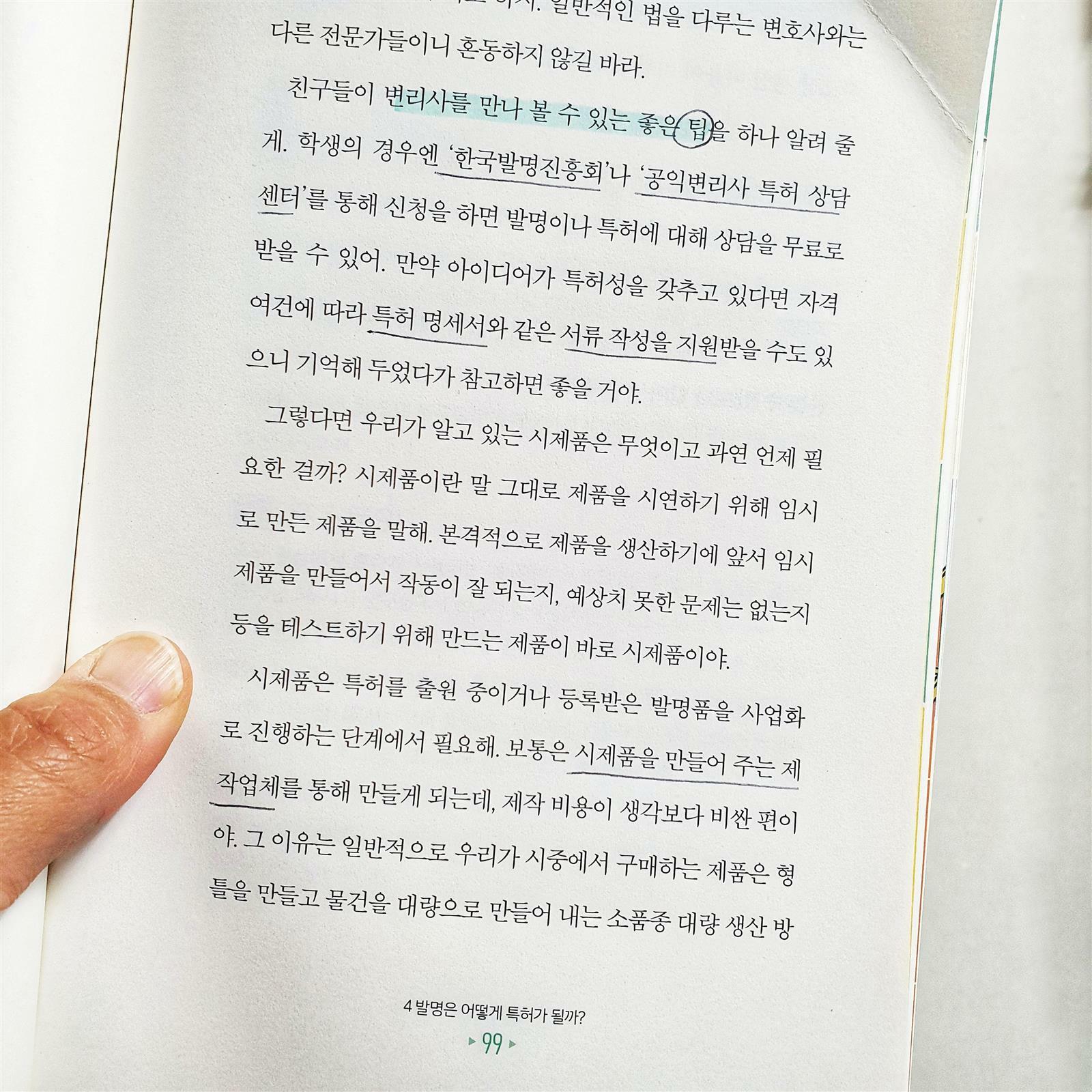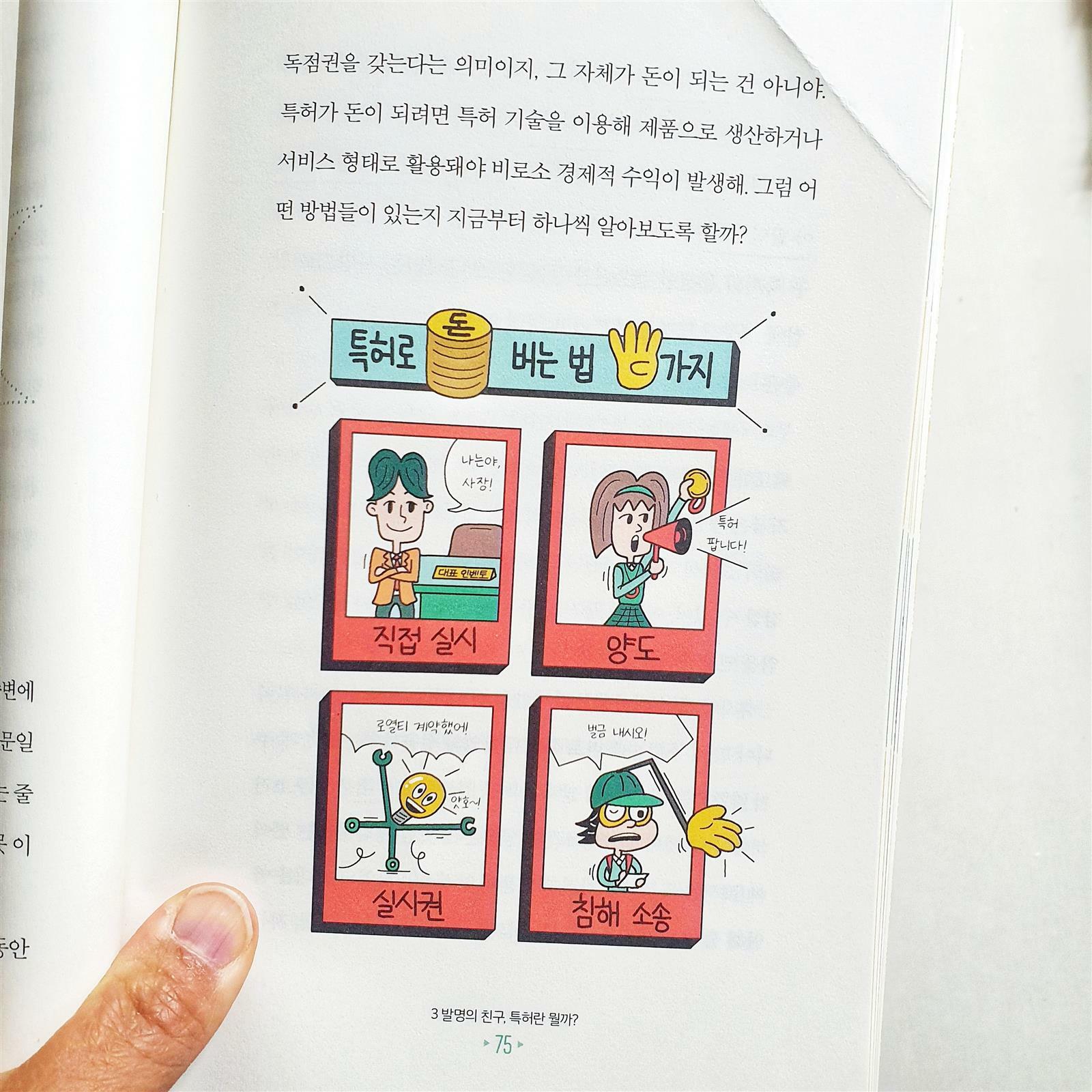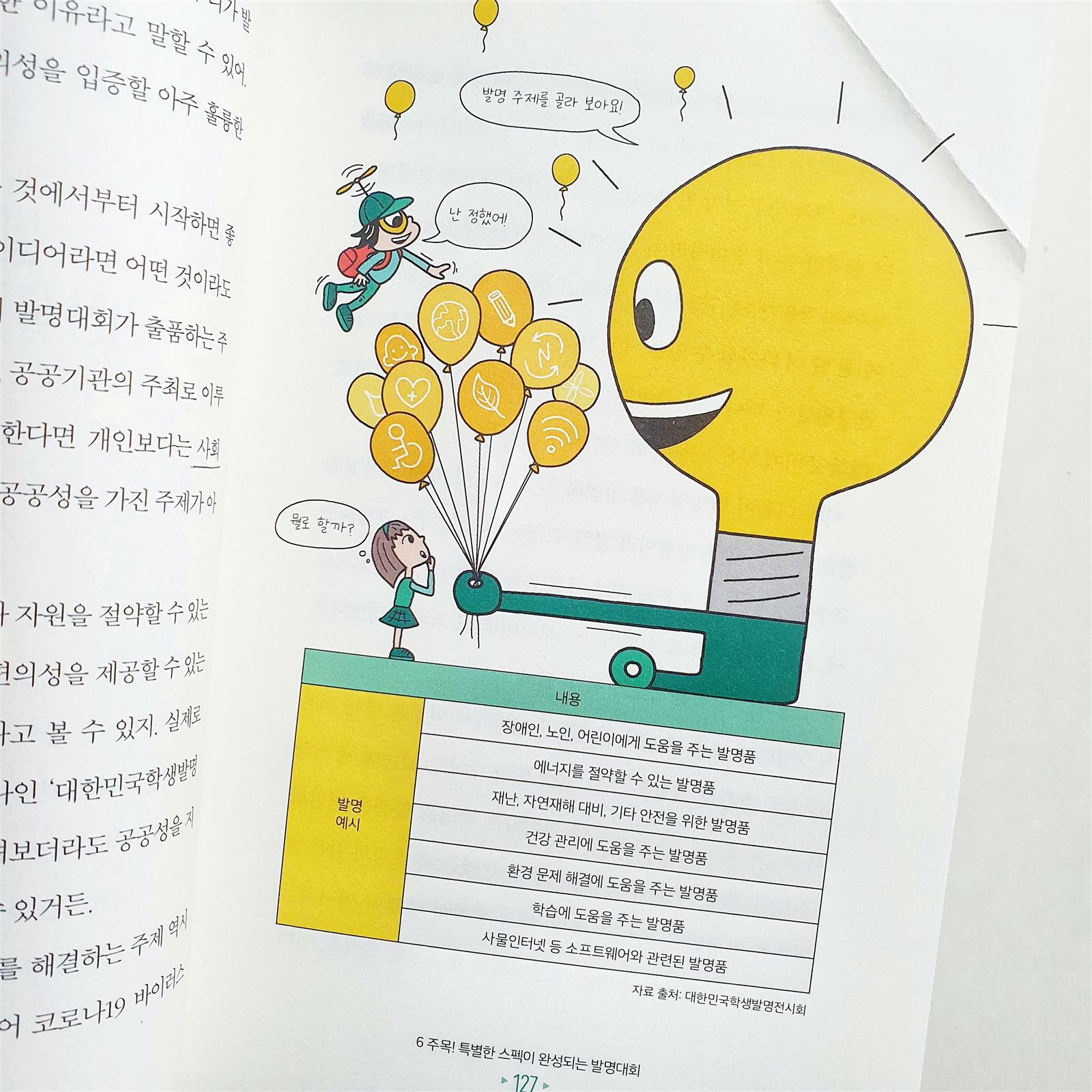 정말 가지고 싶습니다. 지식재산권! 🔹️발명의 여덟 가지 원리 1️⃣ 더하기 기법 - ex)두리 유아 변기 커버 2️⃣ 빼기 기법 - ex)다이슨 선풍기 3️⃣ 크기 바꾸기 기법 - ex)3단 접이식 우산 4️⃣ 아이디어 빌리기 기법 - ex)아기 비데 클리어잭 5️⃣ 모양 바꾸기 기법 - ex)구부러지는 빨대 6️⃣ 용도 바꾸기 기법 - ex)음식물 밀폐 홀더 7️⃣ 반대로 생각하기 기법 - ex)거꾸로 우산 8️⃣ 소재 바꾸기 기법 - ex)알알이 쏙 🔹️변리사를 만나 볼 수 있는 좋은 팁 학생의 경우엔 '한국발명진흥회'나 '공익변리사 특허 상담센터'를 통해 신청을 하면 발명이나 특허에 대해 상담을 무료로 받을 수 있어. 만약 아이디어가 특허성을 갖추고 있다면 자격 여건에 따라 특허 명세서와 같은 서류 작성을 지원 받을 수도 있으니 기억해 🔹️특허로 돈💰 버는 법 4가지 1️⃣ 직접 실시 2️⃣ 양도 3️⃣ 실시권 4️⃣ 침해 소송 🔹️발명대회는 어떻게 준비하는 걸까? 《발명 설명서》작성 1️⃣ 발명의 명칭 2️⃣ 발명의 목적이나 동기 3️⃣ 발명의 내용 및 특징 4️⃣ 발명의 효과 5️⃣ 도면 📣마침 지금 생활발명코리아에서 아이디어 넘치는 여성들의 도전을 기다리고 있대요! 기간은 4월 7일까지✔ 끝까지 읽어주셔서 감사합니다 🤗 ※제공받은 도서를 직접 읽고 활용한 후 솔직하게 작성한 포스팅입니다.