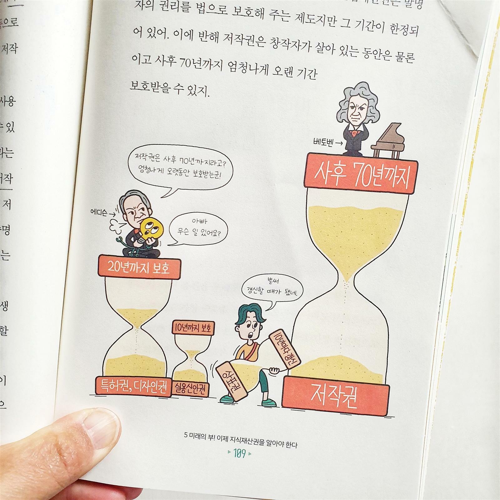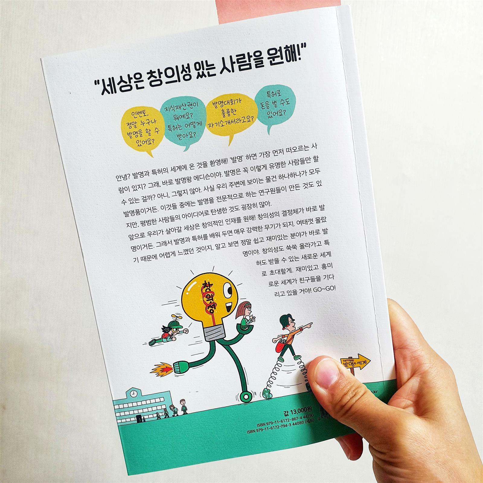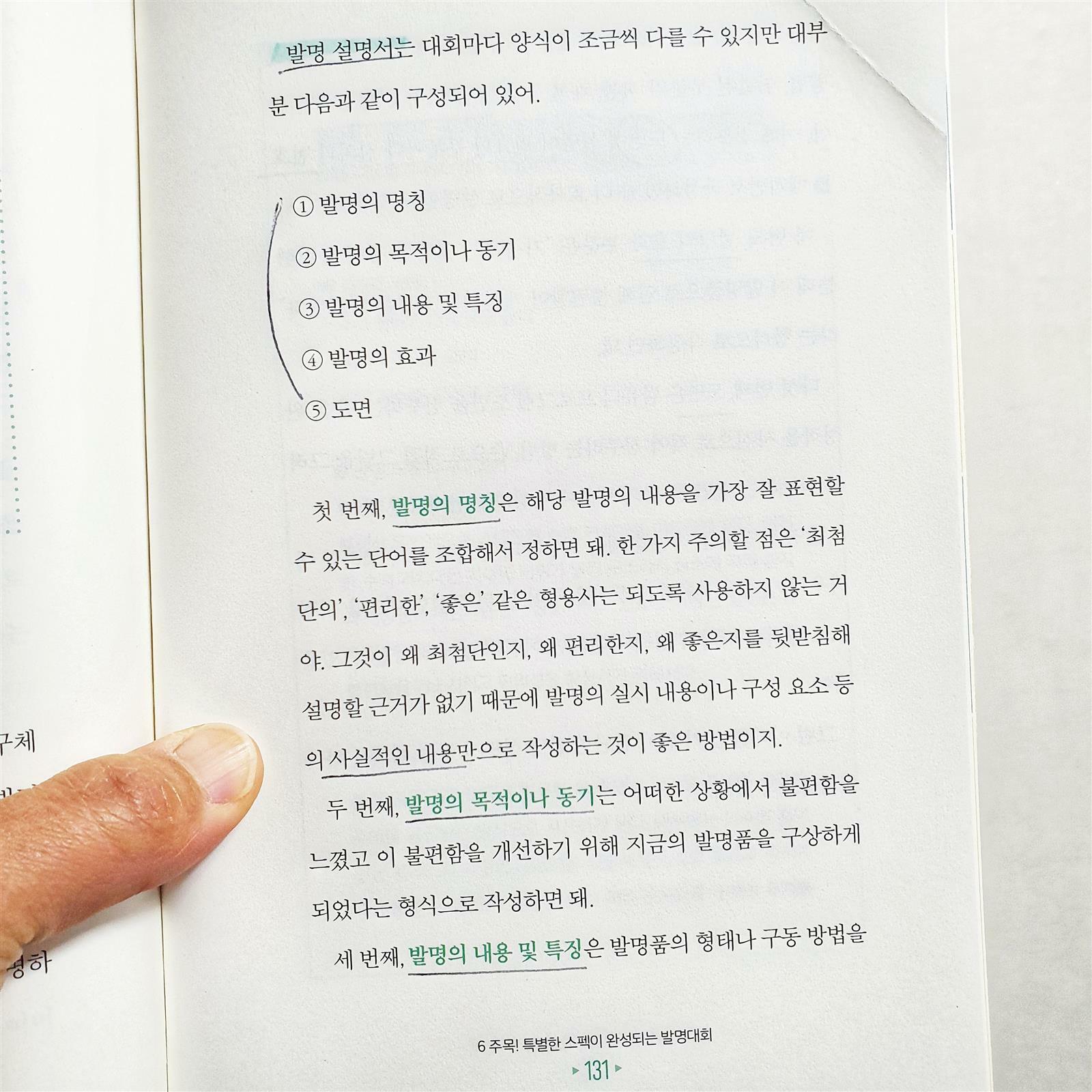 정말 가지고 싶습니다. 지식재산권! 🔹️발명의 여덟 가지 원리 1️⃣ 더하기 기법 - ex)두리 유아 변기 커버 2️⃣ 빼기 기법 - ex)다이슨 선풍기 3️⃣ 크기 바꾸기 기법 - ex)3단 접이식 우산 4️⃣ 아이디어 빌리기 기법 - ex)아기 비데 클리어잭 5️⃣ 모양 바꾸기 기법 - ex)구부러지는 빨대 6️⃣ 용도 바꾸기 기법 - ex)음식물 밀폐 홀더 7️⃣ 반대로 생각하기 기법 - ex)거꾸로 우산 8️⃣ 소재 바꾸기 기법 - ex)알알이 쏙 🔹️변리사를 만나 볼 수 있는 좋은 팁 학생의 경우엔 '한국발명진흥회'나 '공익변리사 특허 상담센터'를 통해 신청을 하면 발명이나 특허에 대해 상담을 무료로 받을 수 있어. 만약 아이디어가 특허성을 갖추고 있다면 자격 여건에 따라 특허 명세서와 같은 서류 작성을 지원 받을 수도 있으니 기억해 🔹️특허로 돈💰 버는 법 4가지 1️⃣ 직접 실시 2️⃣ 양도 3️⃣ 실시권 4️⃣ 침해 소송 🔹️발명대회는 어떻게 준비하는 걸까? 《발명 설명서》작성 1️⃣ 발명의 명칭 2️⃣ 발명의 목적이나 동기 3️⃣ 발명의 내용 및 특징 4️⃣ 발명의 효과 5️⃣ 도면 📣마침 지금 생활발명코리아에서 아이디어 넘치는 여성들의 도전을 기다리고 있대요! 기간은 4월 7일까지✔ 끝까지 읽어주셔서 감사합니다 🤗 ※제공받은 도서를 직접 읽고 활용한 후 솔직하게 작성한 포스팅입니다.