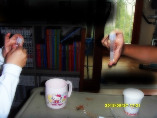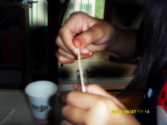 2. 각 시험관에 면봉으로 전분을 같은 양으로 주입합니다.