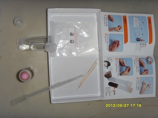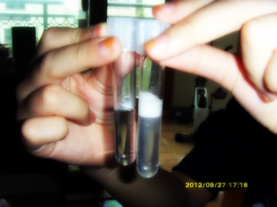 1. 한시험관에는 물을 넣고 다른 시헌관에는 침을 같은 양으로 모음니다.