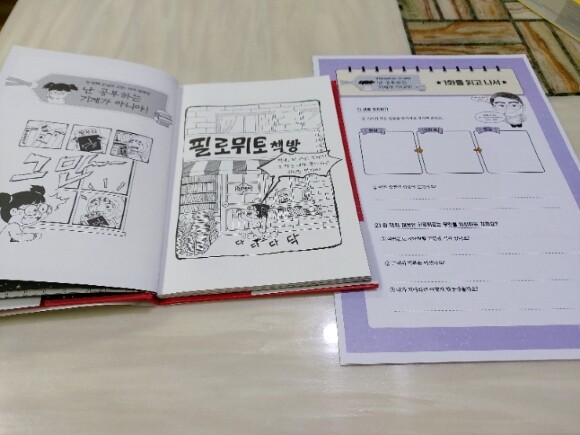 웃찾공 홈페이지에 가면이런 워크지도 제공해줘서 무료로 출력하게 해줘요동화책이나 만화책만 보던 아이들은글책이 조금은 어려울수 있는데욕심내지말고한단원씩 읽고또 그와 관련된 워크지도 풀면한달에 책 한권을 정독하게 되고그렇게 하면서 책에 대한 흥미도도 올릴수 있을꺼에요재미있는 그리스로마신화만화로 열심히 봤다면이젠 이 신통한 책방 필로뮈토를 통해한층 더 성숙한 책읽기에 도전시켜보세요