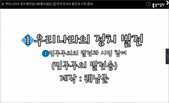 소 1단원에 해당되는 민주주의의 발전과 시민참여 (1)이라 주제로