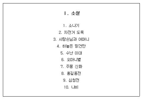 이렇게 세 갈래로 나뉘어서 총 20선의 문학작품들을