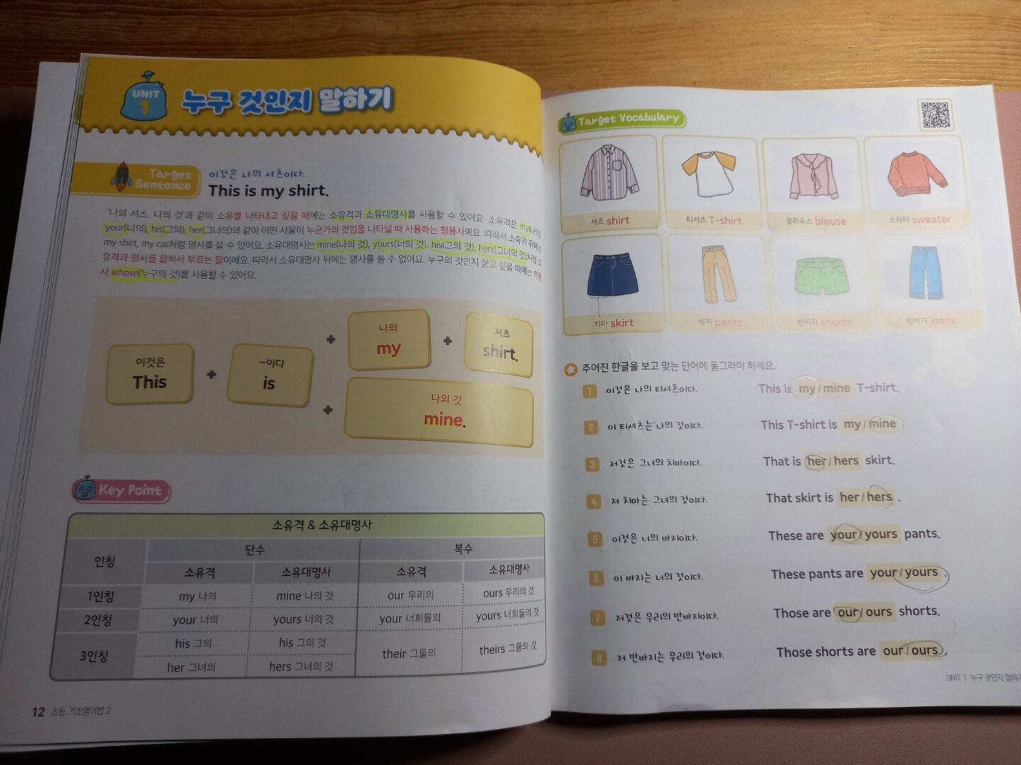 딸 아이가 현재형 문장은 이해하고 말할 수 있는 편인데, 아까 했던 일이라던지 앞으로 할 일을 표현하는 방법은 많이 공부해보지 않아 2권으로 선택을 했어요.