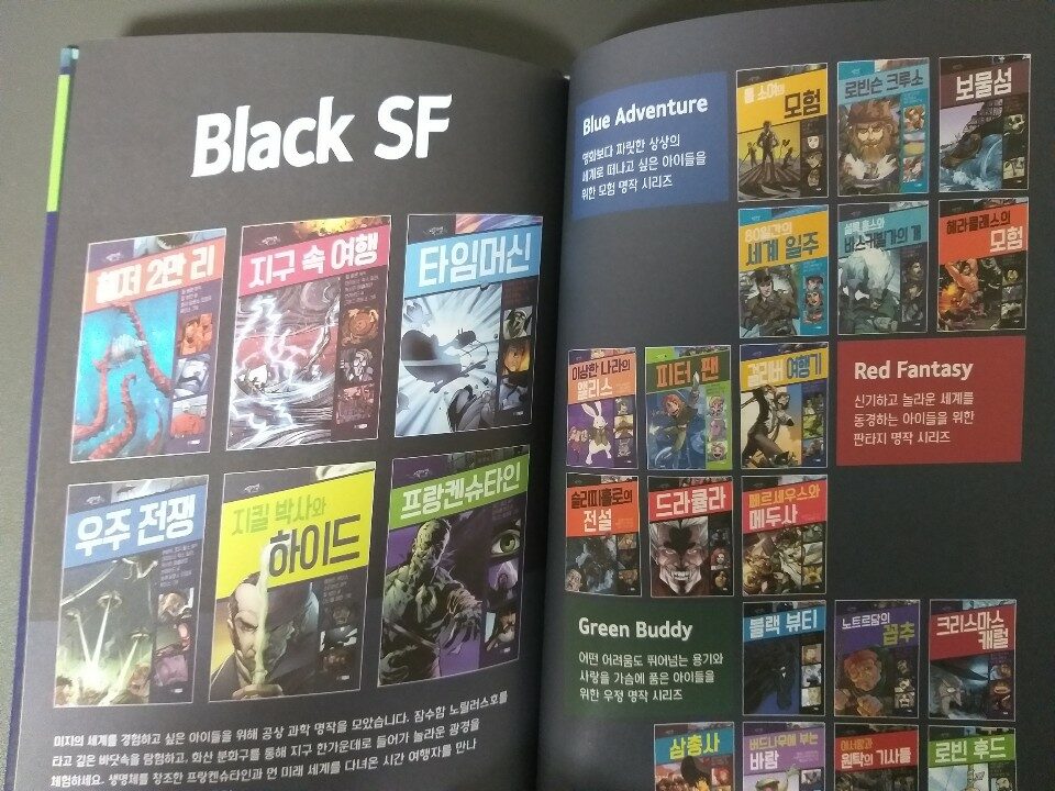 초록도마뱀 명작 그래픽 노블 시리즈에는 다양한 작품들이 있지만, 제가 관심을 가진 작품은 Black SF 시리즈, 그 중에서도 '프랑켄슈타인' 입니다. SF 장르는 여자 아이들이 일부러 찾아 읽지는 않는 작품들이지만, 딸에게 과학과 미래에 대한 무한한 상상력과 스토리텔링 역량을 심어주고 싶어 제일 먼저 선택해봤어요. 세상의 어두운 면에 대해서도 서서히 알아갈 나이이기도 하고요.