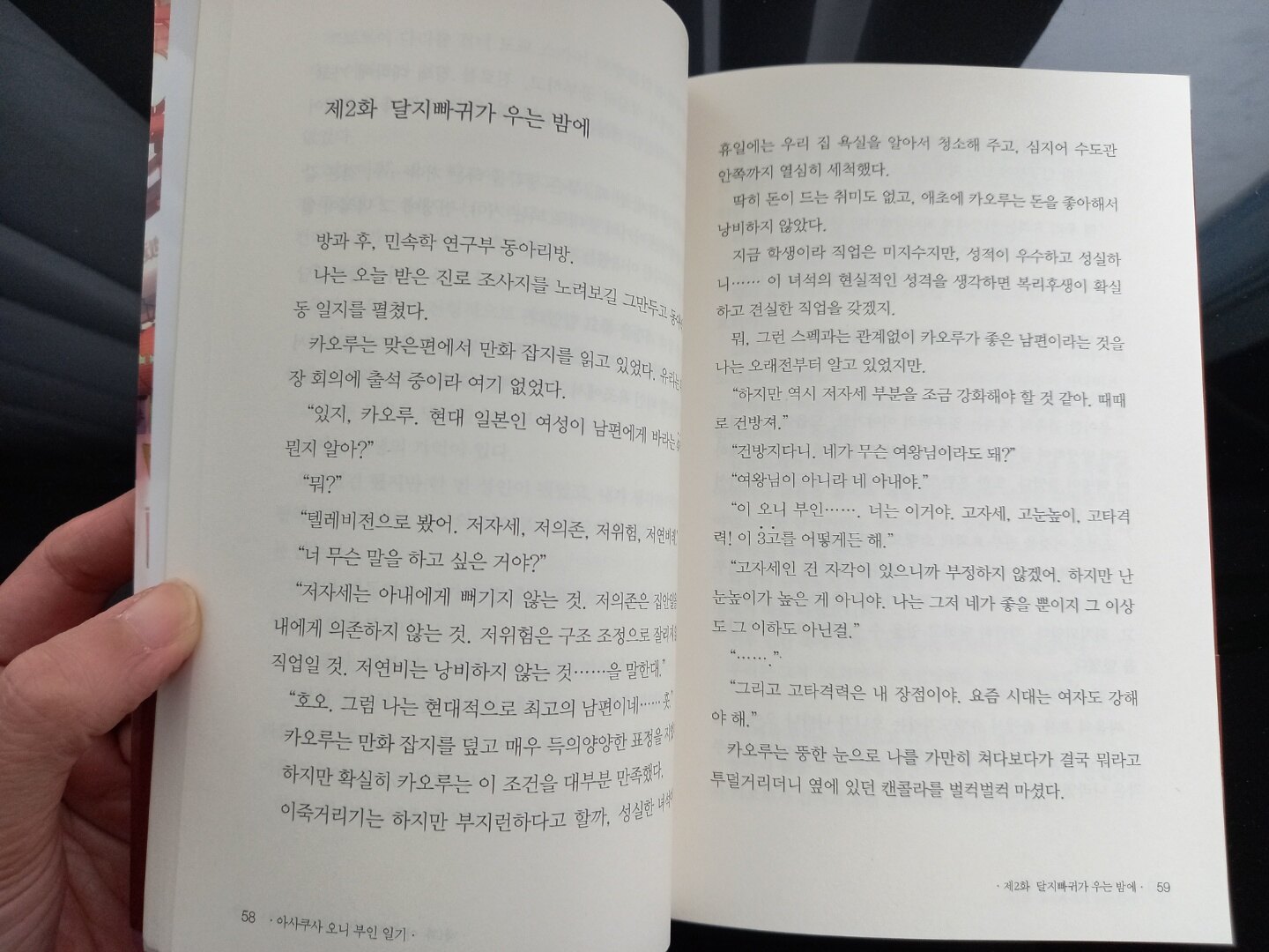 아사쿠사 오니 부인 일기는 일본 특유의 느낌이 물씬 나는 요괴 환생 이야기인데요, 저처럼 일본 문화나 애니메이션에 관심 많은 분들이라면 무척 좋아하실 판타지 소설이에요. 소설의 특성상, 10~20대 젊은 친구들이 더 재미있게 읽을 것 같기도 하네요.