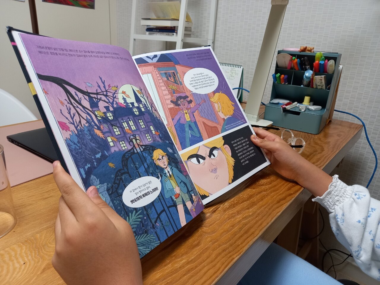 만화가 아닌 스토리북인데, 책의 형태나 디자인이 일본 만화들과 나란히 꽂아두니 딱 어울리더라고요. 내용 역시 일본 만화처럼 독특한 상상력과 캐릭터가 있으면서도 시대를 넘나드는 흥미진진한 스토리로 일본 애니메이션만큼이나 재미있었어요.