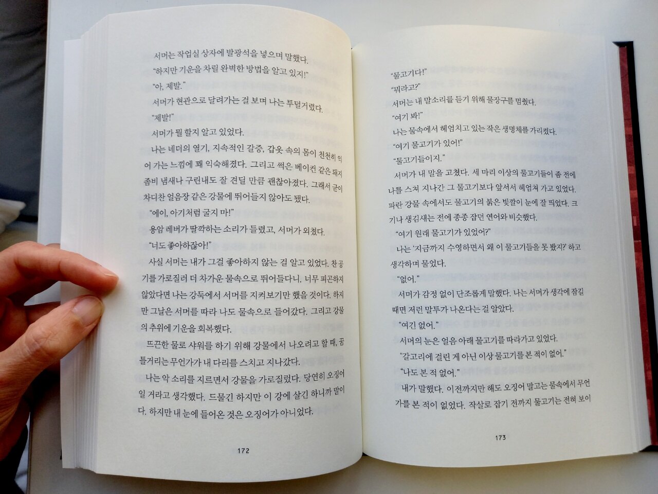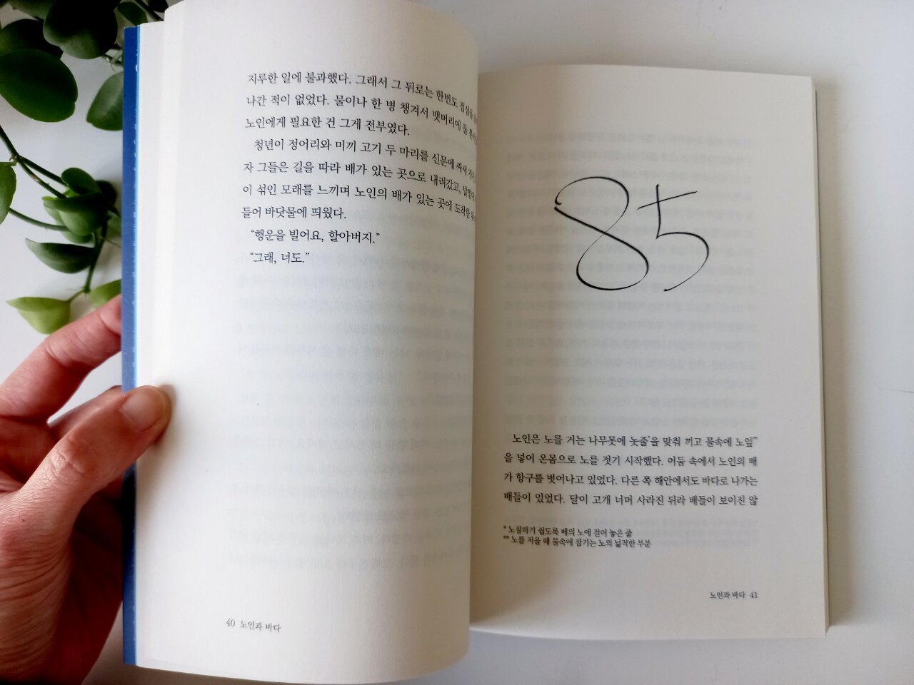 이번에 만난 소리 출판의 노인과 바다는 번역가의 새로운 시선과 역량이 빛난 작품이기도 했습니다. 집에 원서가 있어서 몇몇 부분은 함께 비교해 보기도 했는데 우리가 알고 있던 boy를 말 그대로 소년이 아닌 청년으로 바라본 점, 영어의 라임을 그대로 살리기 보다는 원문의 의미에 좀 더 무게를 실어 번역한 점이 인상적이었습니다.
