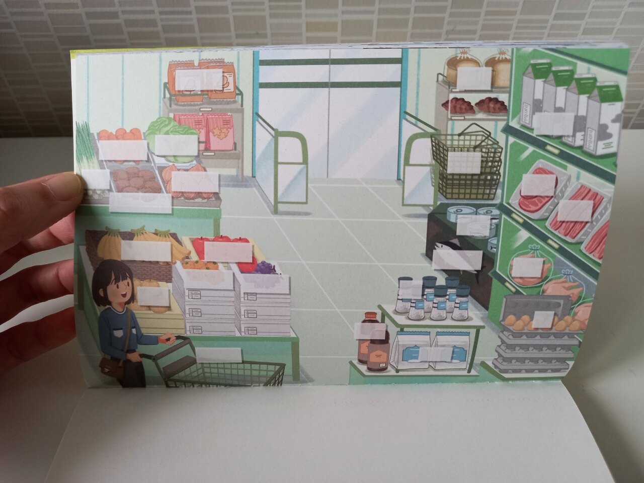 사요 마을 지도를 보고 원하는 장소를 마음대로 골라 페이지를 펼쳐서 시작할 수 있는 재미있는 책이였어요. 다이써 마트, 캇또 미용실, 팡야팡야 베이커리, 키레이네 화장품 가게 등 재미있는 장소들이 많아요. 감정이입을 잘 한다면 실제로 일본의 거리를 걸으면서 일본어 단어를 알아가고 대화하는 듯한 느낌도 들지 않을까 싶네요.