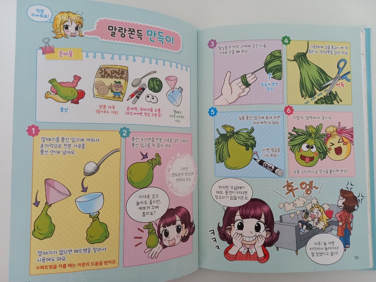 책은 재미있는 에피소드들 사이에 DIY 만들기 방법이 실려있는 독특한 구성이에요. 말랑쫀득 만득이, 과자집 만들기, 책상 정리함 만들기, 강아지 노즈워크, 참치캔 보석함 등 참신하고 신기한 DIY 아이템들이 가득해요.