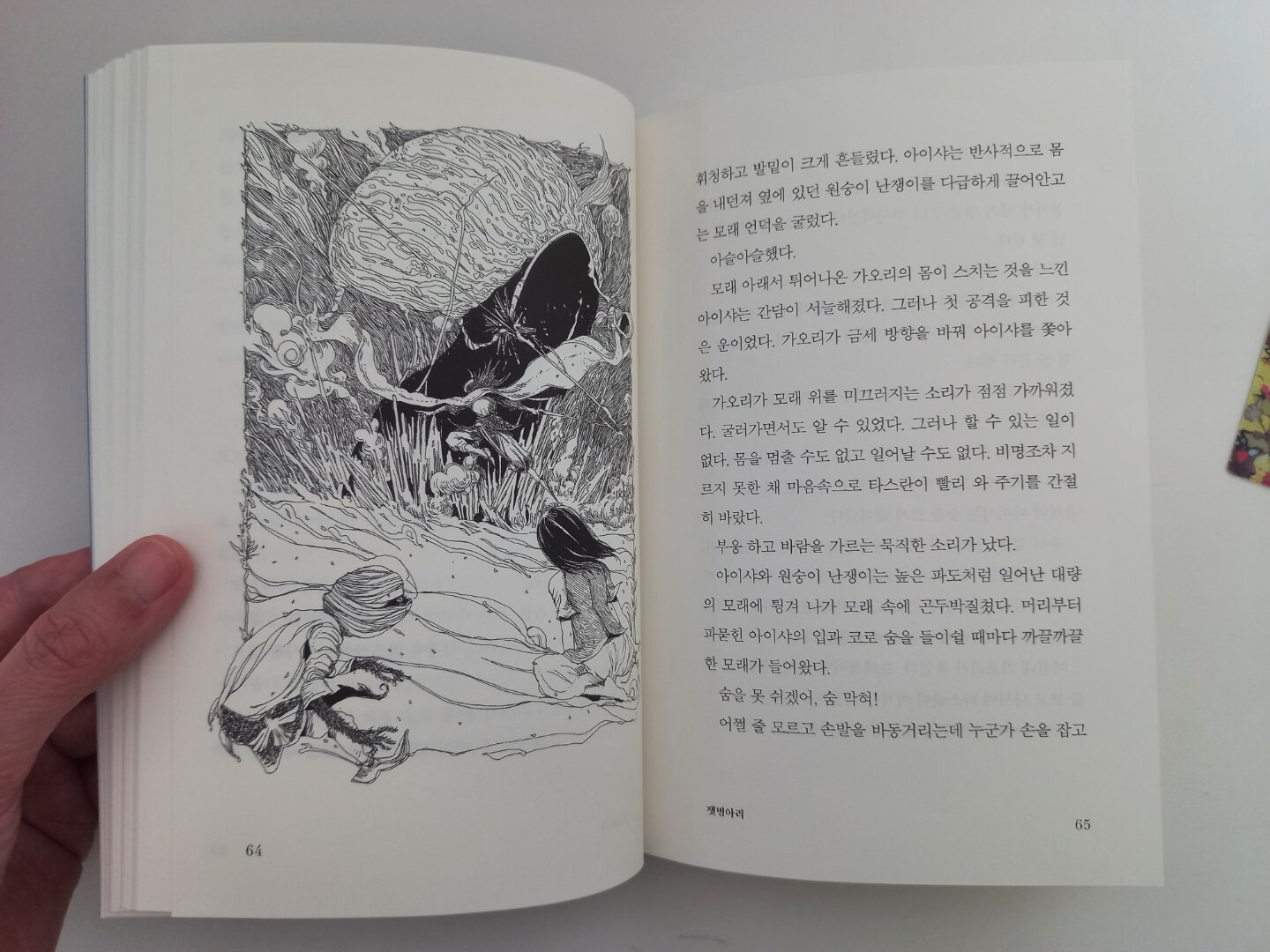 처음에는 어색하기만 했던 아이샤와 타스란이 모험을 함께 하며 서로를 소중하게 여기게 되는 과정이 감동적이고요, 읽는 내내 초록 보석의 정체가 궁금해서 책을 놓을 수 없게 만들더라고요. 읽으면서 <청의 왕>의 세계관이나 캐릭터들과 연결고리를 찾아보는 재미도 있었습니다.