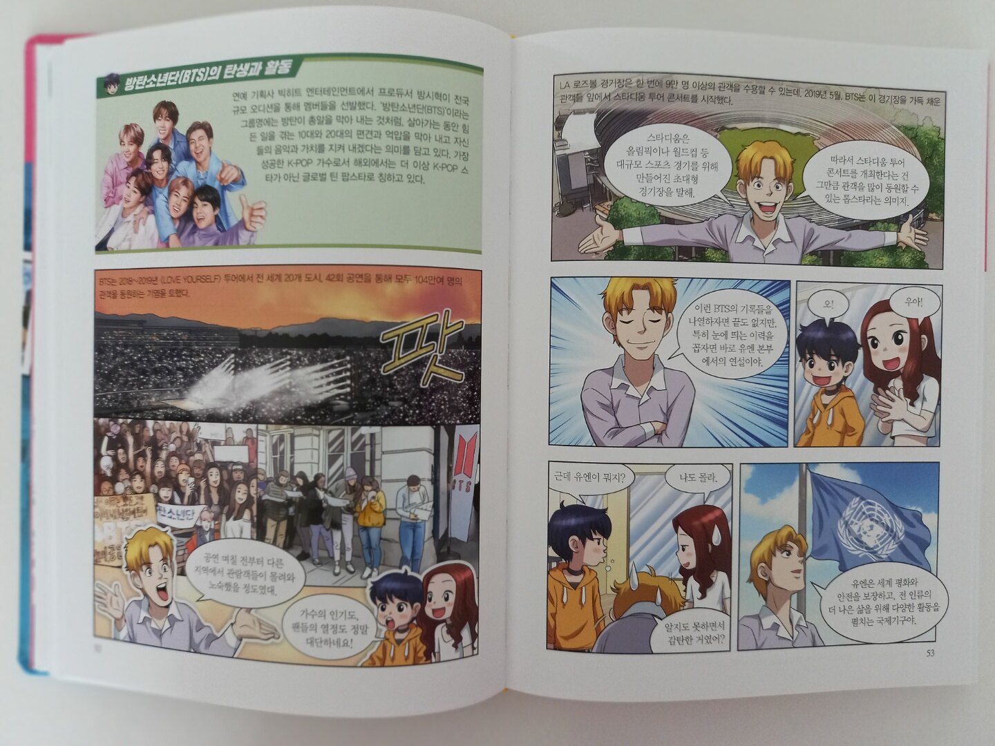 프로듀스 101 투표 조작 사건 등 K-POP 문화의 어두운 면도 균형있게 실려 더 좋았던 것 같아요. 만화가 끝나면 논술터치 코너에 책 내용을 확인할 수 있는 퀴즈가 실려 있는데 풀어보면 도움이 되겠죠.