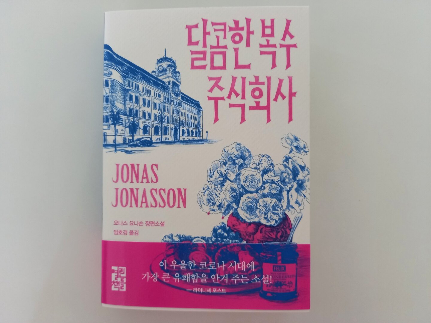 따끈따끈한 신간 장편소설 <달콤한 복수 주식회사>입니다. 스웨덴 작가 요나스 요나손의 다섯번째 작품이라고 하는데요, <창문 넘어 도망친 100세 노인>으로 전세계적으로 많은 인기를 얻은 작가이죠. 요나스 요나손의 신작을 기다려온 분들 많을 것 같은데, 저 또한 그 중 한 사람이에요.