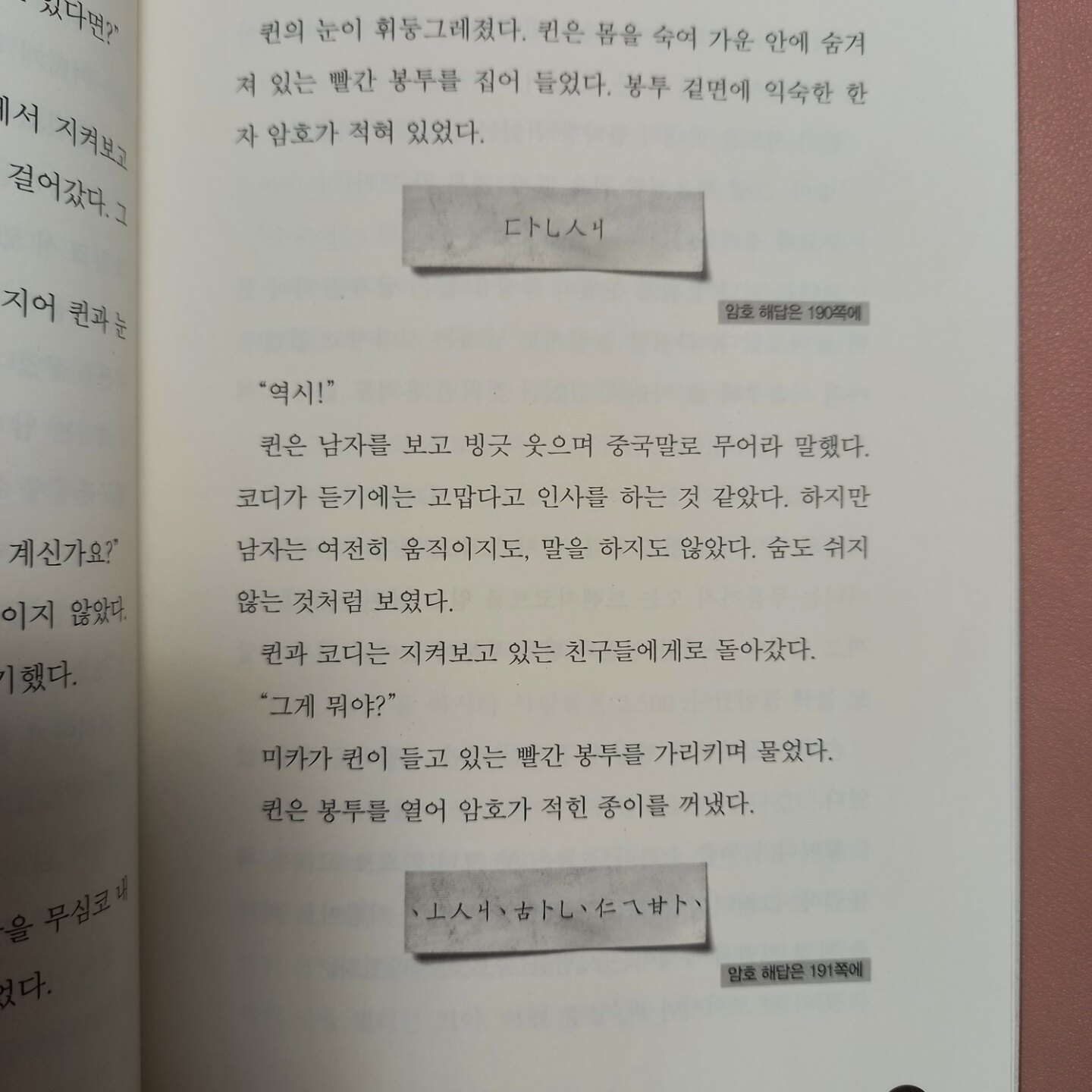 지문자, 모스 부호, 한자 암호, 무전 신호 등 여러가지 암호를 암호클럽 멤버들과 함께 풀어나가는 재미가 있는 책이에요. 이번에는 책갈피에 지문자와 모스부호 해독표가 나와 있어서 더욱 편리하게 암호를 풀어볼 수 있더라고요. 이번에는 차이나타운에서 벌어지는 에피소드인만큼 칠교로 만든 열두 띠 동물 암호도 있어서 새롭고 재미있었어요.