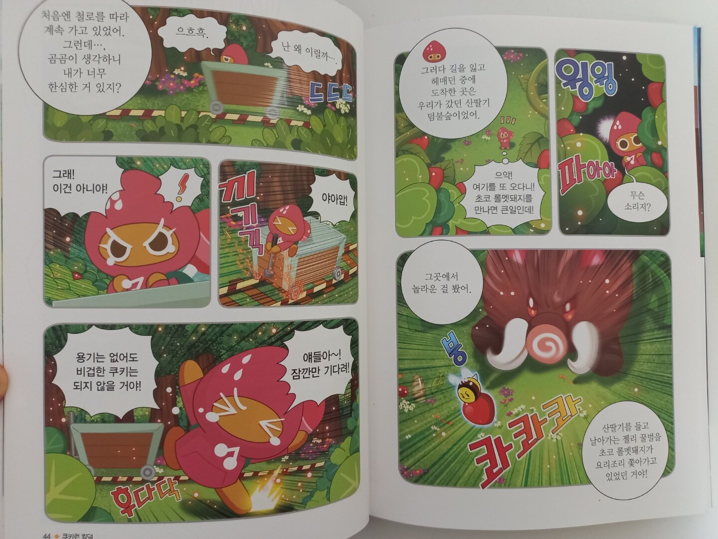 오리지널 레벨업 코믹북 <쿠키런 킹덤> 1권 작은 거인의 땅 편에 이어 2권 용의 언덕 편이 나왔네요. 아이가 1권을 재미있게 읽고 무척 기다리고 있었던지라 책을 받자마자 얼른 읽어보더라고요. 쿠키런 캐릭터들은 여전히 깜찍하고 매력적이네요.