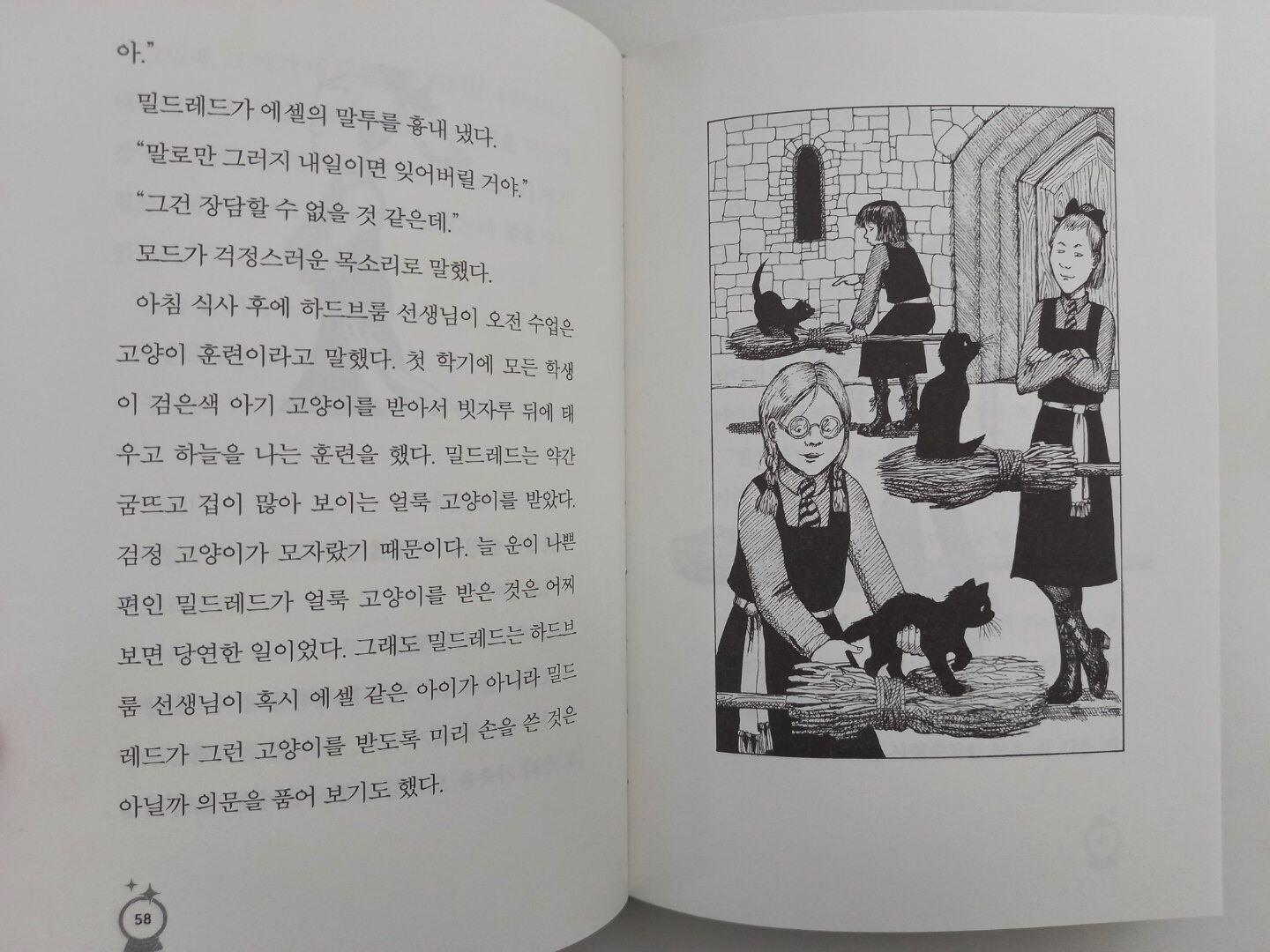 모든 일에 서툰 꼴찌 마녀지만 마음이 순수하고 따뜻한 밀드레드와 함께하는 마법학교 에피소드를 담은 책이에요. 딸 아이는 실수투성이 밀드레드에게 좋은 친구 모드와 고양이 태비가 있어서 다행이란 생각이 들었다네요. 역시 친구란 소중한 것 같다는 소감을 전해주더라고요.