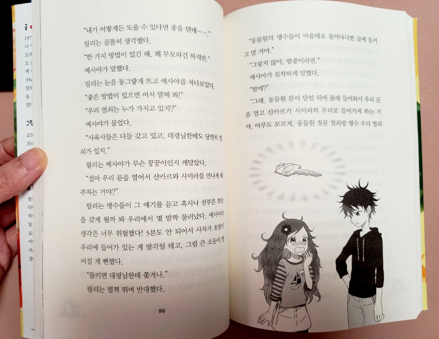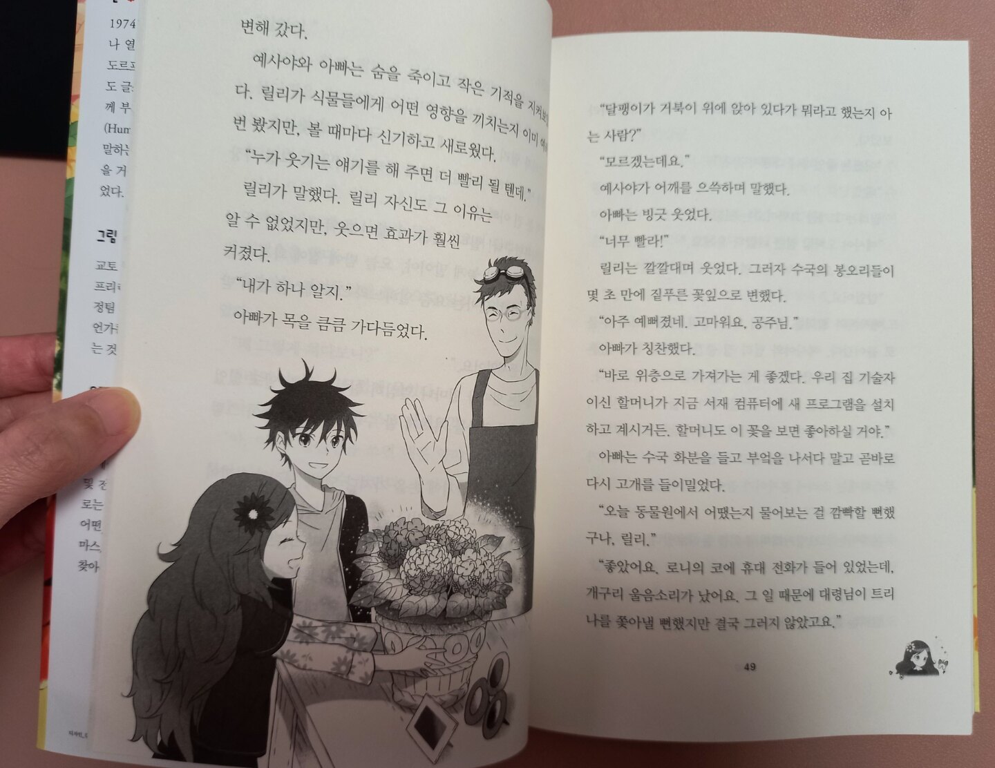 게다가 순정만화 같은 일러스트가 소녀들의 마음을 사로잡습니다. 딸아이가 딱 좋아할 만한 그림체였어요. 10대 소녀들이라면 반할만할 그림들이 가득해요. 글 중간중간 예쁜 일러스트가 풍부하게 들어가 있어 읽는 재미, 보는 재미 다 있는 책이네요.