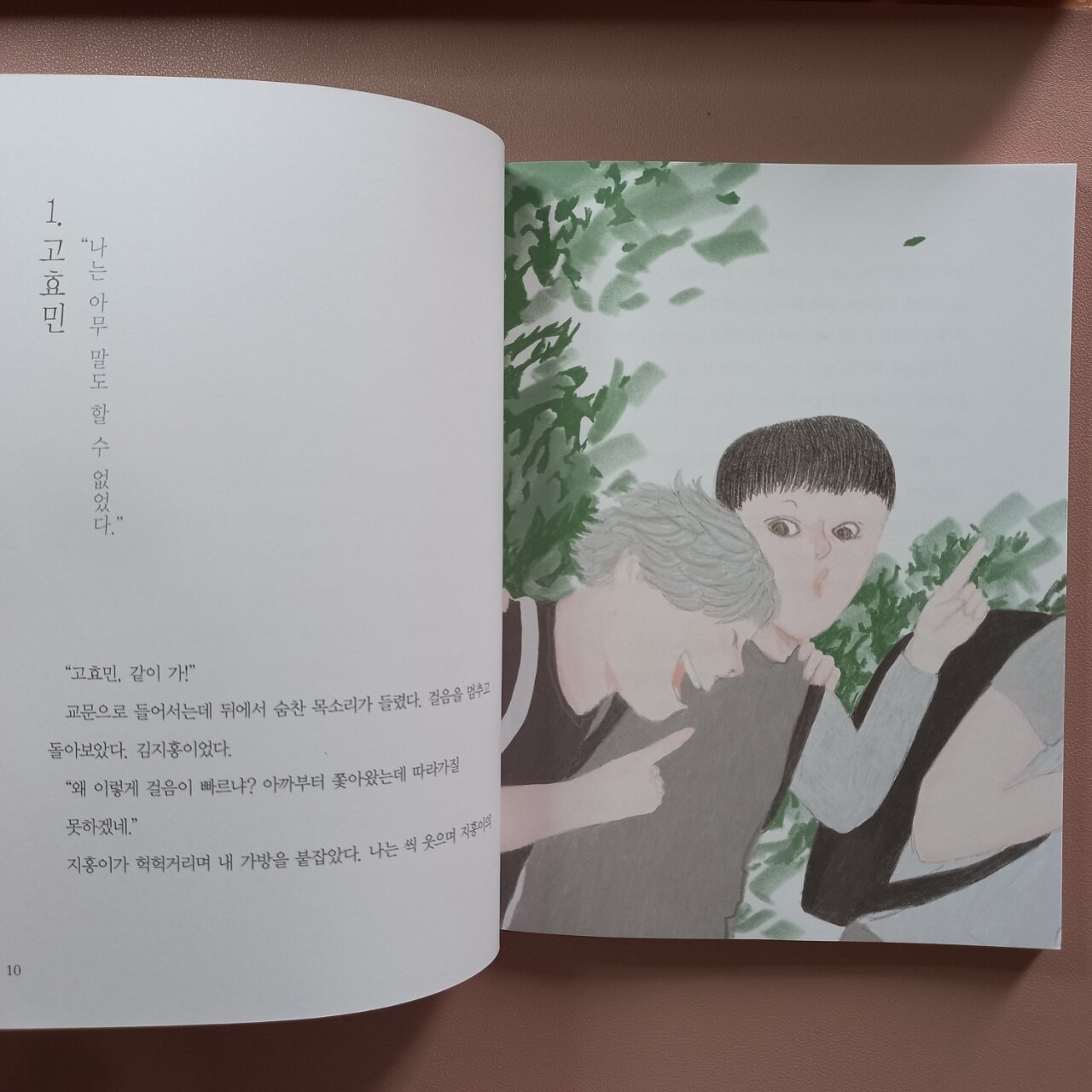 고효민, 임수현, 강주목이라는 세 아이의 시점에서 갈등 구조를 드러내고 풀어가는 형식이 흥미롭고 새롭습니다. 같은 스토리도 어떤 형식과 구성으로 풀어내느냐에 따라 상당히 다른 감상을 불러 일으킬 수 있다는 점이 흥미로웠습니다.