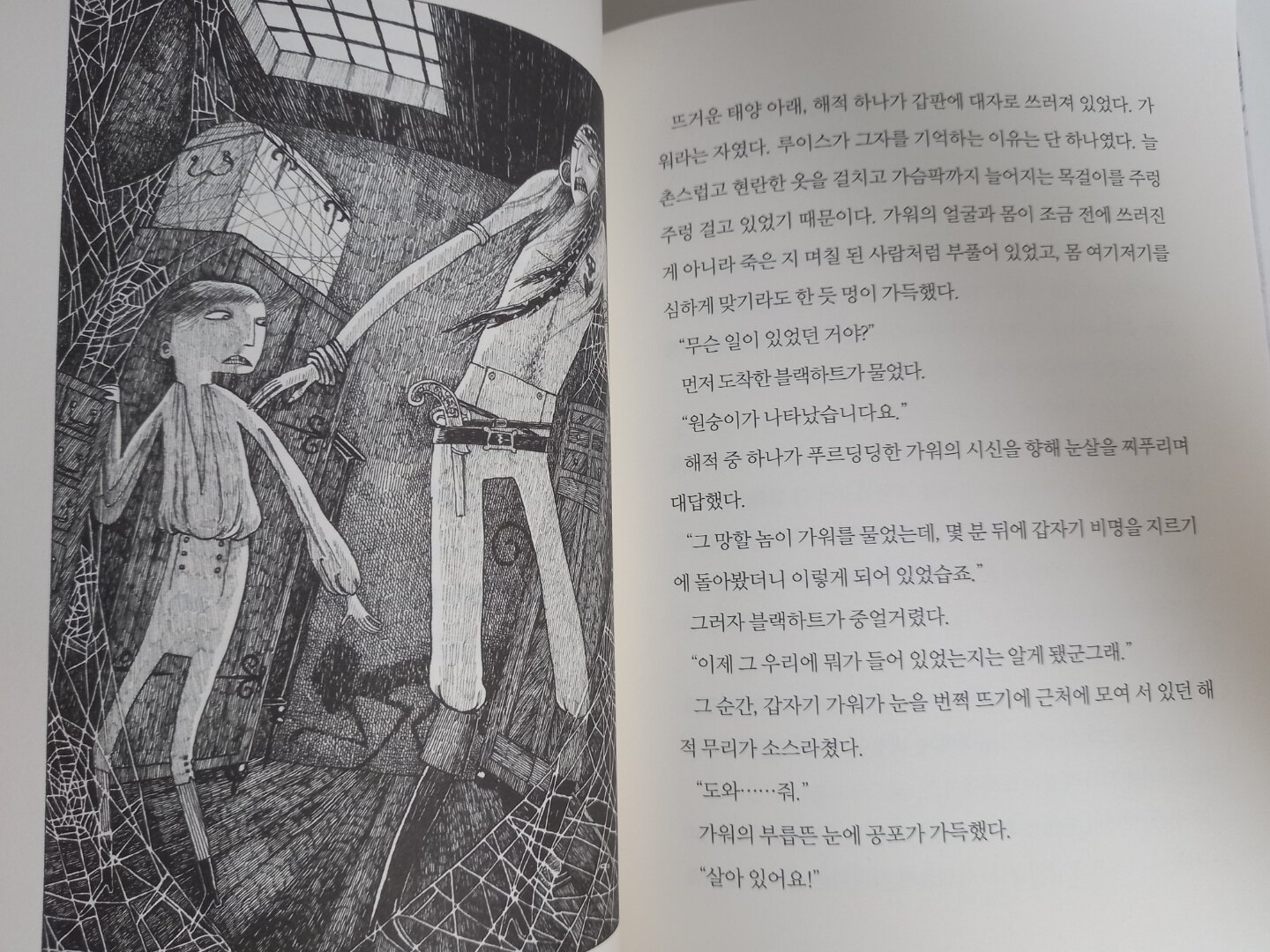 저는 이 책을 읽으면서 영화 '캐러비안의 해적'이 생각나기도 했어요. 난파된 배의 시체를 선원으로 쓰는 검은 유령선이 등장하기도 하고, 전체적으로 바다 위에서 벌어지는 이야기들이라서 그런가봐요. 하지만 <몬터규 아저씨의 무서운 이야기>는 유머를 쏙 뺀 제대로 된 공포문학이니 각오하고 읽어야 할 거에요.