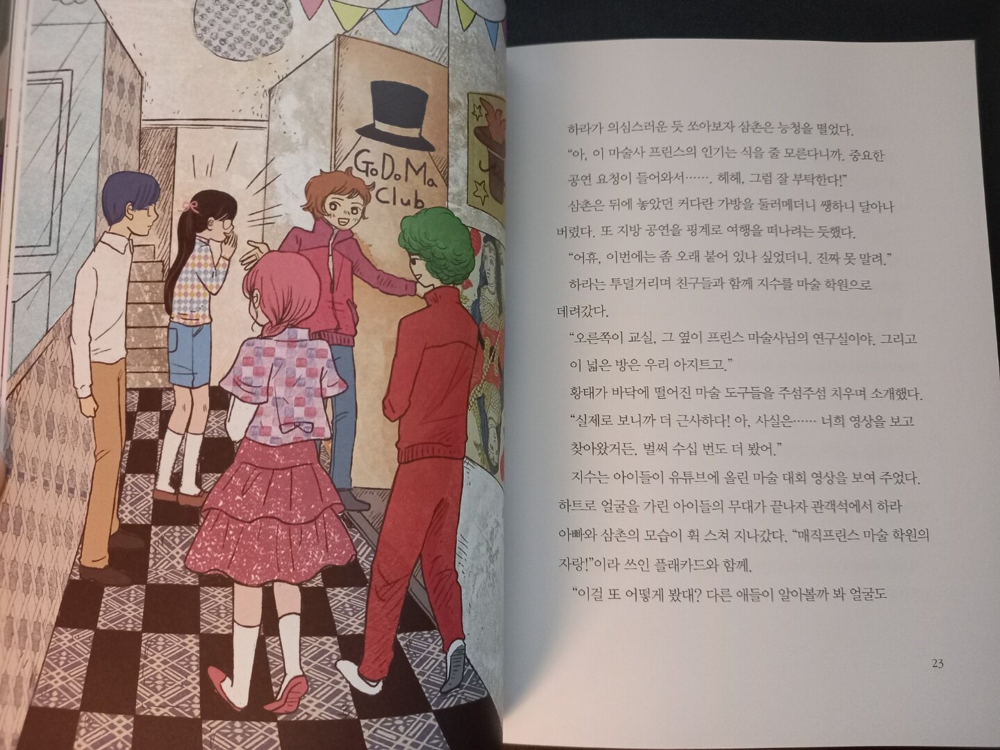 본격적인 마술 대결이 펼쳐지면서 실제 마술을 감상하고 있는 것처럼 묘사된 페이지들도 재미있었고, 미스디렉션 같은 마술 용어도 알게 되어 마술과 한층 더 가까워진 기분이 들더라고요.