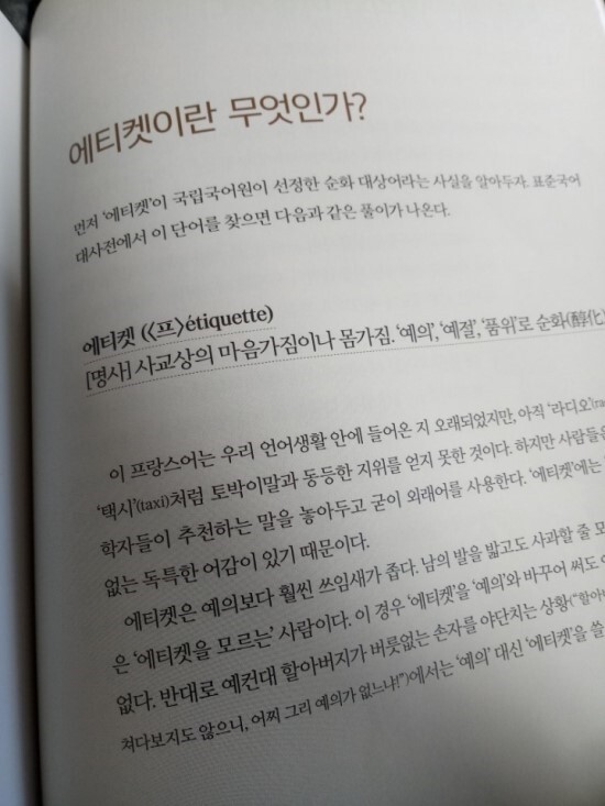 또한 이 에티켓이 어떻게 변해왔는지 그리고 이 앞으로는 어떻게 변해갈 것인지, 에티켓의 역사와 미래에 대해서도 이야기 해주고 있다.