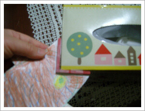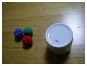그리고 나서 아이가 눈을 감은 동안 공의 일부를 통 속에 감춥니다.
