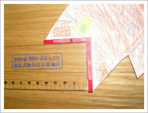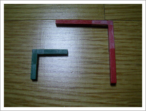 8가베의 1, 2번 막대를 각각 2개씩 준비하여 직각을 만들어 테이프로 고정합니다.