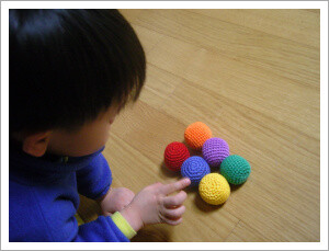 아이에게 공의 개수가 모두 몇 개인지 세어보게 했어요.