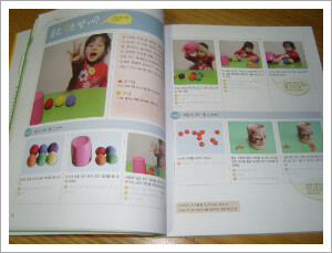 초등수학의 교육과정에 맞춰 <수와 연산>, <도형>, <측정>, <확률과 통계>, <규칙성과 문제 해결> 이렇게 총 5개의 영역별로 구성되어 있습니다. 그리고 모든 놀이에는 추천 연령이 표시되어 있어서 아이의 연령과 학교 진도에 맞춰서 놀이를 진행할 수 있도록 되어 있습니다. 그리고 놀이마다 모든 과정에 활동사진이 실려있고, 엄마가 아이와 나눌 수 있는 예시 대화문도 수록되어 있어, 수학가베를 처음 시작하는 엄마와 아이도 부담감 없이 쉽게 따라할 수 있어서 좋았습니다.