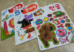 많은 교재들 중 만5세 워크북 창의력편과 만4~5세 스티커북 한글편을 만나보았습니다.