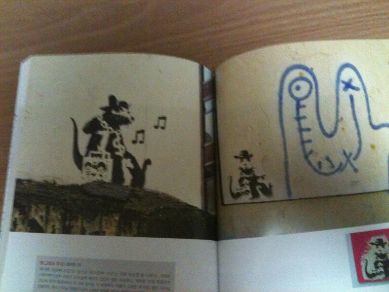 그래피티 그림하면 오색찬란 다양한 색깔표 표현한 현란하교 요란하고 뭔가 알아보기 힘든 스케일이 큰 그림들만 연상 했었는데 쥐 그림을 보니 왠지 재미썼다
