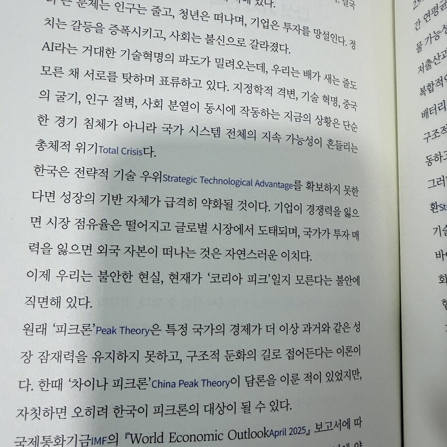 저자가 지적한 5가지 중에 저는 2가지는 정말 심도있게 고민해야한다고 생각합니다. 첫번째는 인재육성과 보존 및 발굴입니다. 경영과 기술은 결국 인재싸움입니다. 인재는 인센티브도 좋지만, 결국은 ‘성장’할 수 있는 환경하에 붙어있습니다. 그리고 다른 인재와 경쟁할 수 있어야 하지요. 그리고 이러한 인재가 민간기업이 아니라 다방면에 있을수 있어야 합니다. 함부로 돈을 ‘푸는게’ 아니라 경쟁할 수 있는 사람한테 과감히 돈을 풀어야 합니다. 두번째는 양국의 전략적 활용입니다. 현실적으로 중국은 부품조달시장이자 가장 큰 고객인데 저 역시 특정 제품의 조달에서 부품 조달때문에 큰 어려움을 겪었던 기억을 보면 공급망패러다임 전환을 위해 장기적으로 중국내부와 중국외부의 지역에서의 조달시장을 발굴해야합니다. 할일은 너무 많지만, 이 두가지부터 진행되어야 K반도체 피크탈출이 가능하며, 본서는 이러한 현실적인 대안을 고민했다는 것 만으로도 충분히 일독의 가치가 있었습니다.