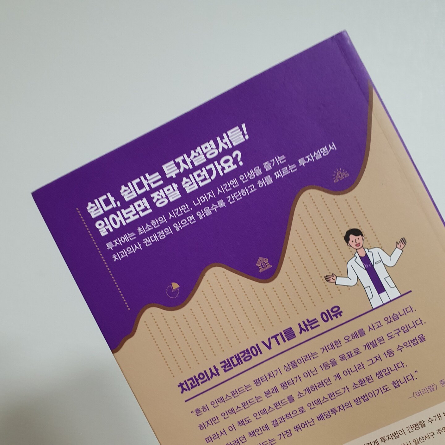 현직 치과의사로서 2년간 500%이상의 자산증가를 만들어낸 저자가 얘기하는 본서의 투자방법은 한 문장이면 끝입니다. ‘여유자금이 생길때마다 미국 인덱스 펀드에 투자할 것, VTI같은’ 시시해도 너무 시시하죠. 지수추종하는 펀드를 꾸준히 사라니, 그렇게 믿고 삼성전자를 작년부터 적립식 매수했는데 올해 1월부터 지금까지 완만한 미끄럼틀을 경험하신 투자자분들이라면 기가차고 코가 막힐 얘기입니다. 그런데 투자자로서 저는 이분의 의견이 상당히 설득력이 있고 논리적이라고 생각합니다. 그 이유를 말씀드리죠.