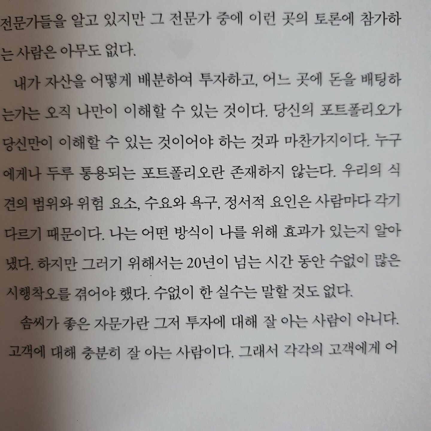 꾸준함과 배우기, 과욕방지라니 무슨 선문답도 아니고, 그런데, 저는 이보다 더 나은 방법이 오히려 무엇이 있는지 궁금합니다. 하지만 꾸준함은 자산을 불리고, 그 자산이 복리가 되어 다시 자산을 늘려줍니다. 그리고 그 자산을 효율적으로 늘리는 것은 배우기 ‘바로 부자들을 따라하는 것’입니다. <이웃집 투자자들>은 25명의 투자자(라고 말하는 부자들)을 만나 그들이 어떻게 자산을 일궜는지를 보여줍니다. 25명은 각자의 투자방식이 다릅니다. 주식과 채권, 부동산, 사업 각자의 방식은 전부 상이합니다. 하지만 저는 여기서 두가지 공통점을 발견했습니다. 바로 경제적인 자립, 그리고 분산투자입니다.