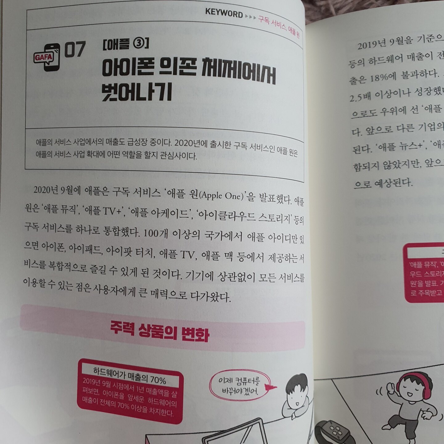 그래서 이미 해당 기업들의 주식을 보유(한적 있거나 가지고 있는)했던 저로서는 <플랫폼제국의 성공 시나리오>가 그리 흥미롭게 읽히진 않았습니다. 예를 들어 애플이 영업이익을 늘리기 위해 아이폰 의존체제에서 벗어나 태블릿을 만들고, 애플 뮤직을 만들고 결국엔 애플원으로 만드는 것, 구글이 유튜브를 인수해서 온라인 광고 플랫폼을 만드는 것 페이스북의 인스타그램 인수합병, 메신저사업을 통해 통합 SNS 플랫폼을 만드는 것은 사실 해당 기업의 주주라면 누구나 알만한 이야기이기 때문입니다. 보도자료에 나온 내용들을 좀 더 자세히 적은 것 그 이상 이하도 아니죠.