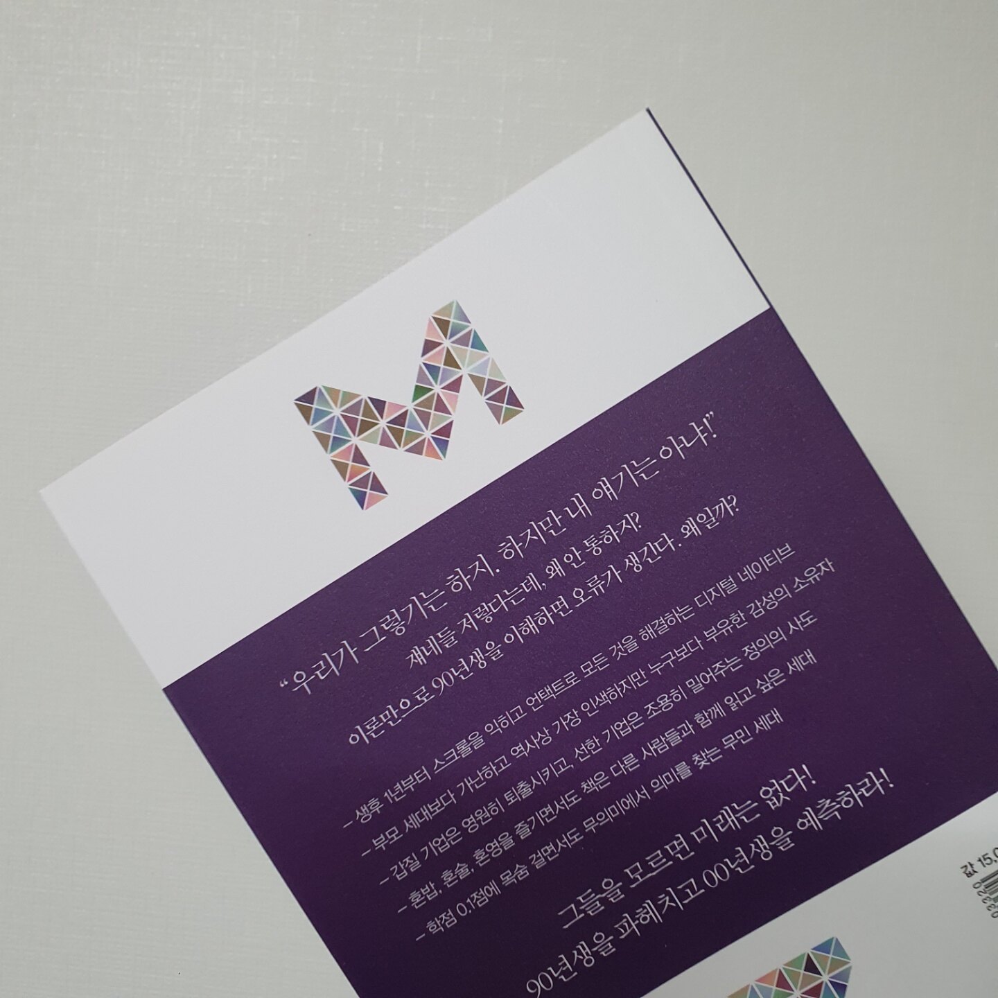 결과적으로는 제 기대에 부응하진 못했습니다. 왜냐하면 <MZ세대 트렌드 코드>는 2019년 버전 <트렌드 코리아>나 대학내일 20대연구소에서 발간하는 <MZ세대 트렌드리포트>보다 새롭거나 많은 내용들은 없었기 때문이죠. MZ세대들이 공정성이 가중치를 둔다거나, 부캐를 만들어서 멀티페르소나를 적용하는데 익숙하다는 점, 그리고 MZ세대의 신조어등은 이미 지난 서적이나 최근 보도자료에 있는 내용들의 판박이에 불과하기 때문입니다. 본서는 새로운 내용들을 전달하기 보다는 기존 트렌드서적과 MZ세대 리포트들을 잘 정리하고, 그 내용들이 실제 MZ세대들이 쓰는지를 확인한 서적에 불과합니다.
