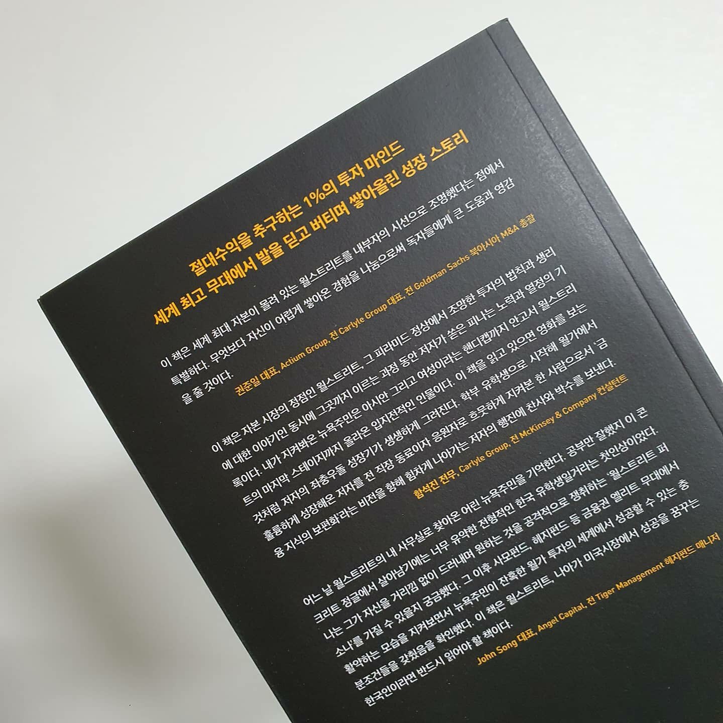 아마도 많은 분들이 <진짜 미국식 주식투자>를 읽고 나서 투자전략등에 대한 서적을 기대했을지도 모르겠는데요. 예상외로 <디 앤서>는 투자방법등에 대한 서적이 아니라 미국에서 어떻게 수학을 하고 컨설턴트-투자은행뱅커-헤지펀드 트레이더에서 현재까지 이어지는 자신의 인생역정과 철학을 다룬 서적입니다. <진짜 미국식 주식투자>의 경우 미국주식시장의 업황과 구조, 그리고 전략적 투자방식에 대해 굉장히 상세하게 다루기 때문에 그걸 다 소화하기에는 아직도 시간이 여의치 않아 완독을 못한 반면 <디앤서>의 경우 에세이처럼 쓰여있기 때문에 비교적 술술 읽혔지만, 그럼에도 불구하고 단순한 스토리텔링을 넘어서 완독후에 생각할 거리들이 무척 많았습니다.