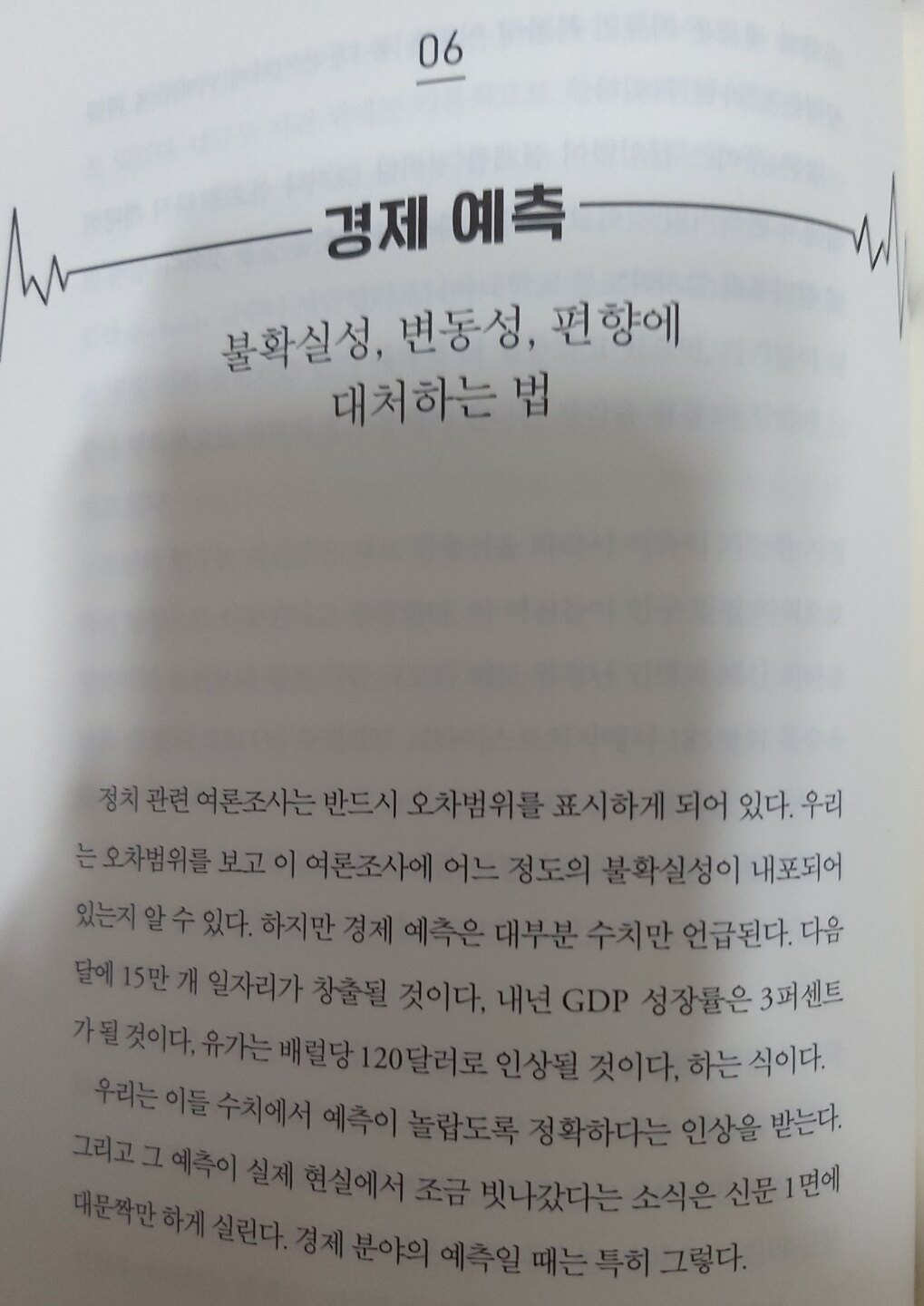 이 책은 이전에 출간되어 많은 사람들에게 읽히면서 미래 예측의 방식에 대해 많은 도움을 준 적이 있다. 이번에 새롭게 출간된 개정본으로 읽으면서 새삼스럽게도 세상이 빠르게 변화하며 그 가운데 많은 소음이 있지만 어떻게 신호를 찾는 것이 중요한지 다시 한번 느끼게 되었다. 미래를 예측한다는 것은 일종의 예지력이나 직감을 사용한다는 뜻과는 다르다. 이 책은 우리에게 평소와 다른 사고방식을 하기를 주문하며 보다 확률적으로 생각하기를 주장한다. 이 책을 소음이 가득한 세상에서 의미 있는 신호를 찾으려는 사람들에게 일독을 권하고 싶다.