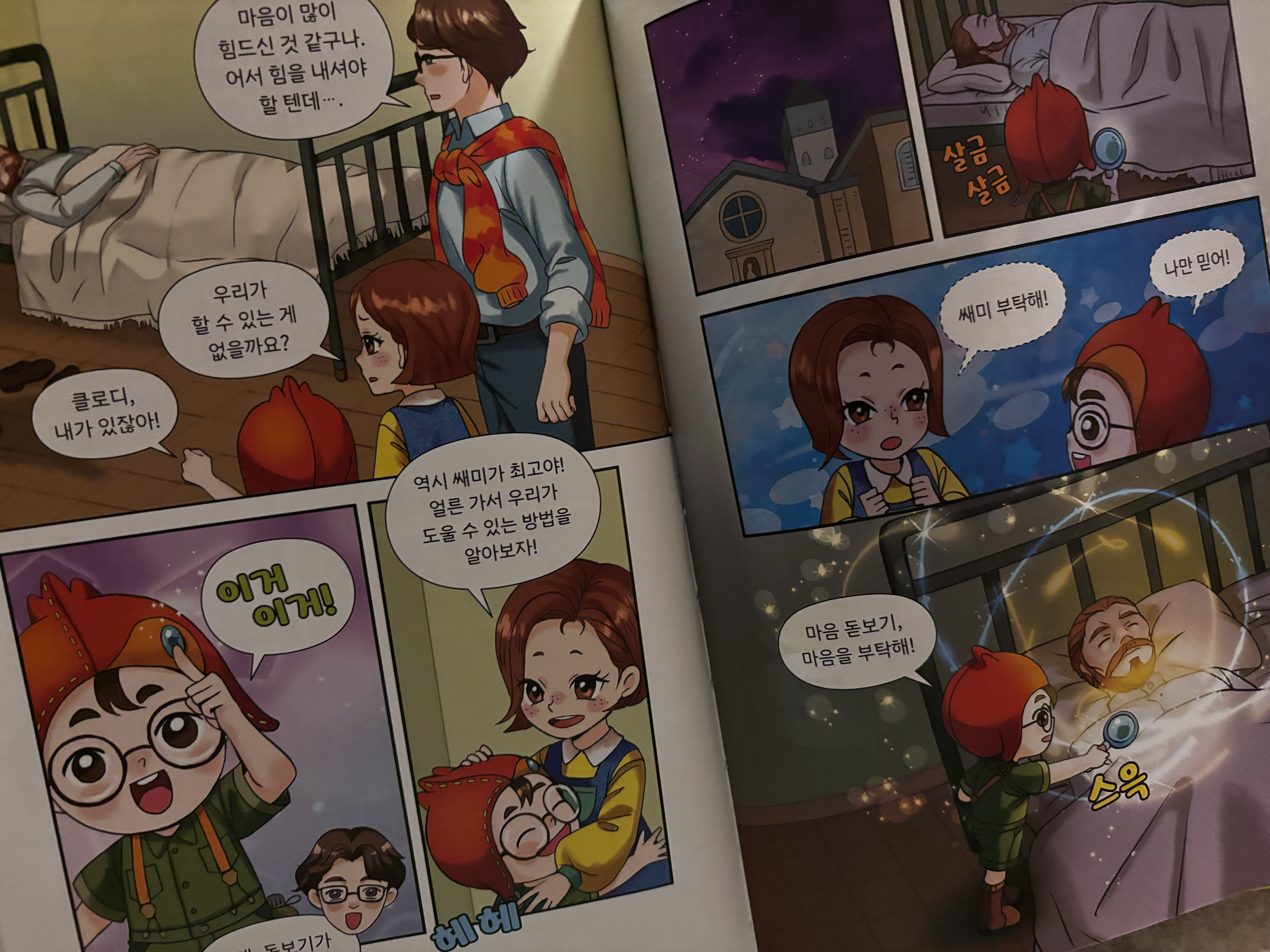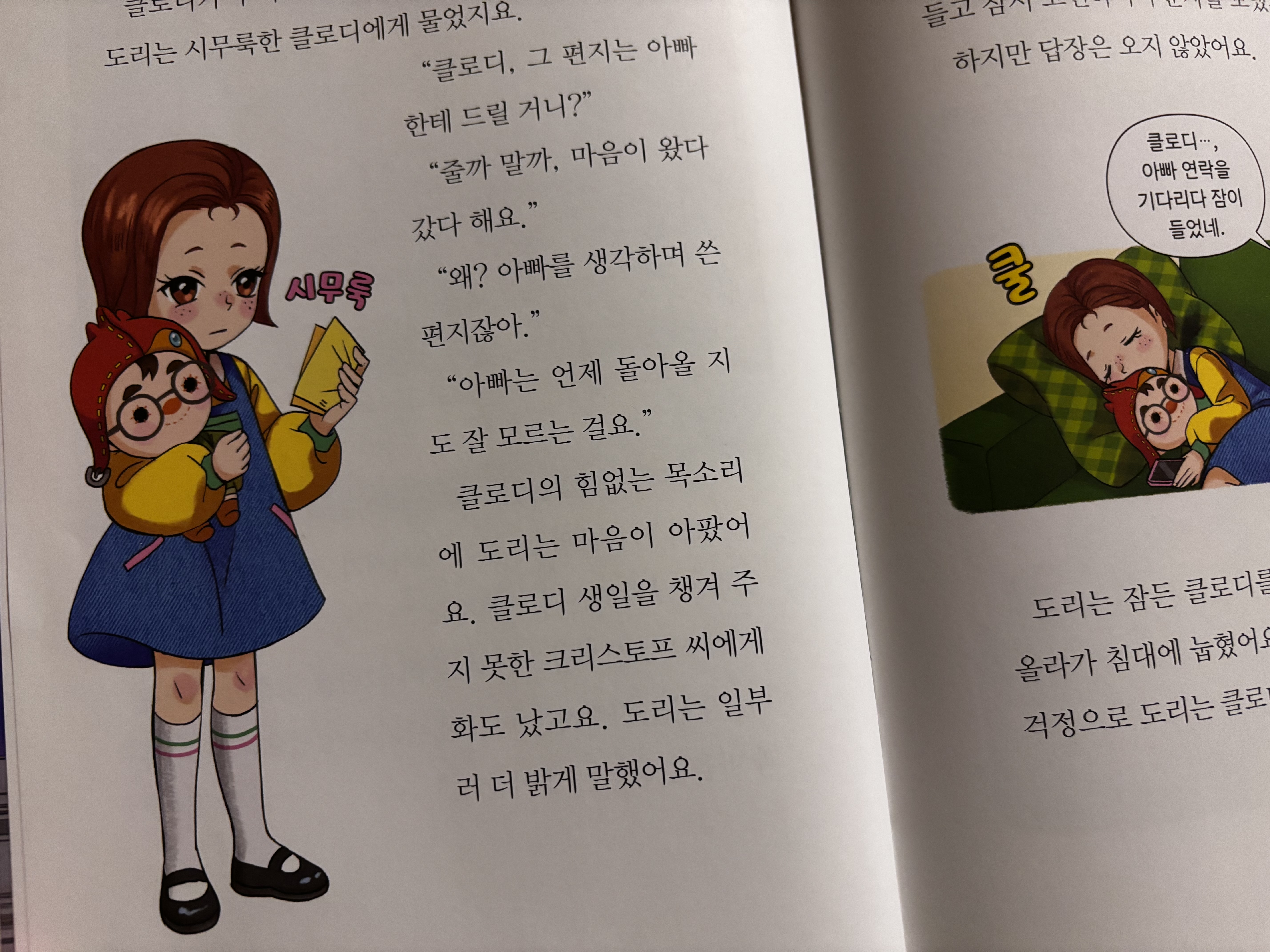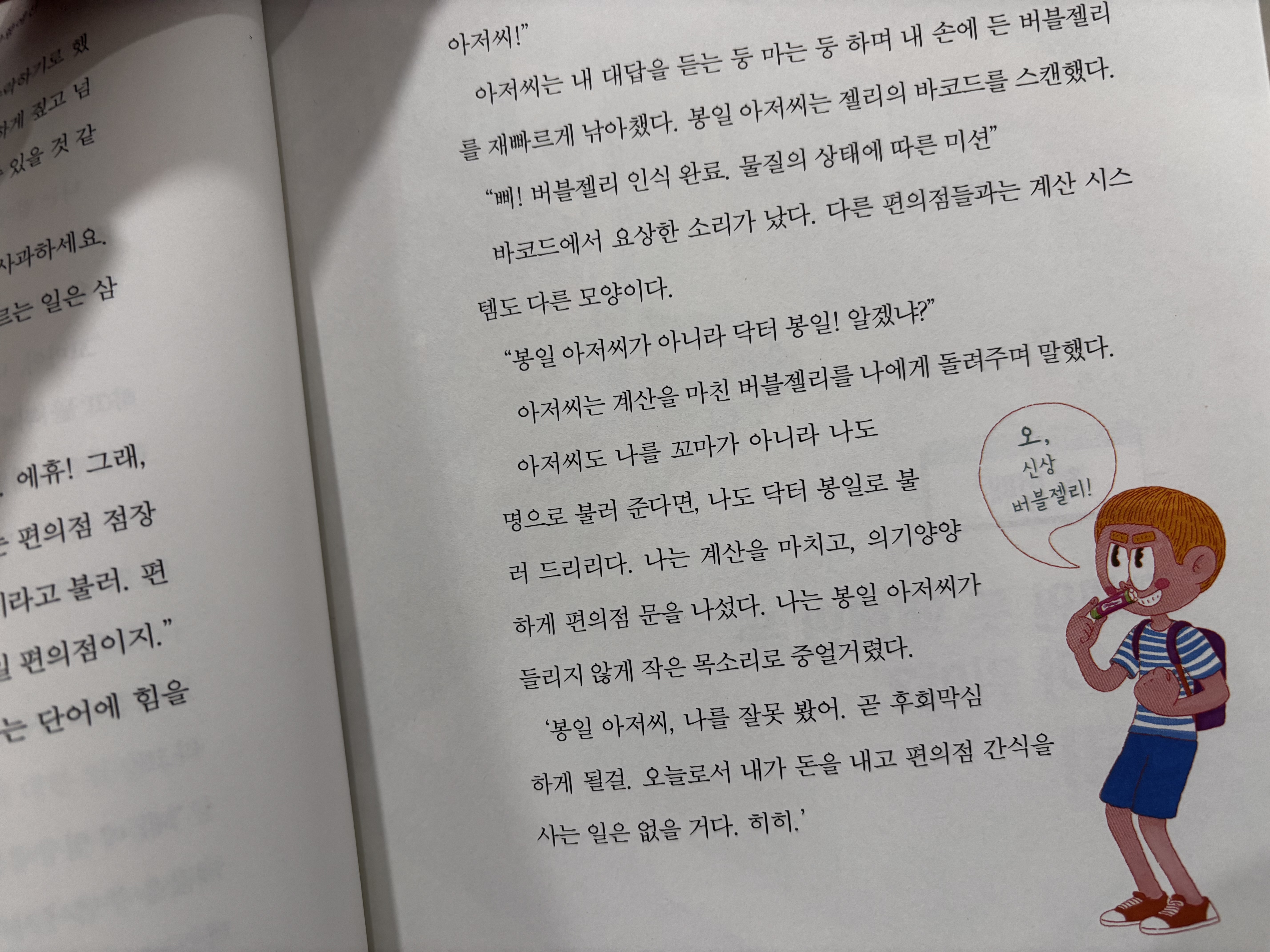 책 앞뒤 부분에 있는 그림이 조금씩 달라지는게 신기했어요.”라고