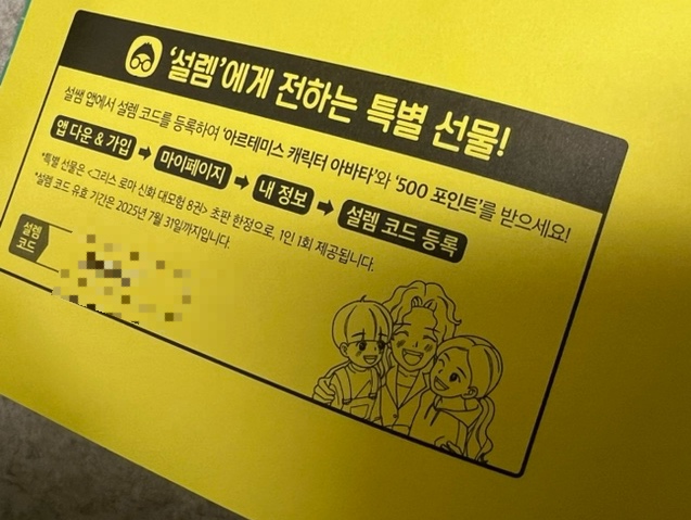 '아르테미스 캐릭터 아바타'와 '500포인트'를